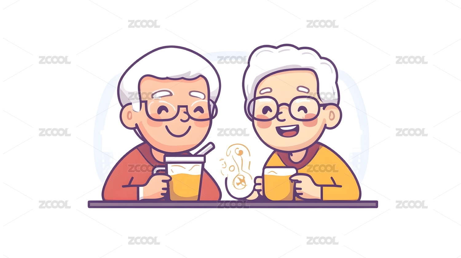 在一起喝茶的爷爷奶奶