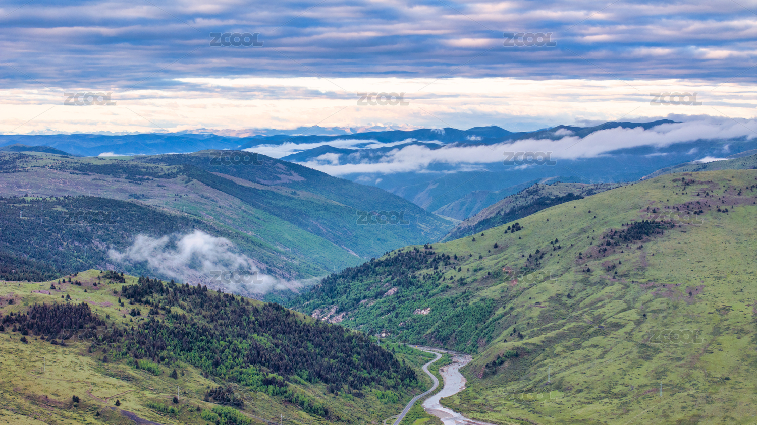 四川西部甘孜新都桥镇鱼子西景区山顶风光航