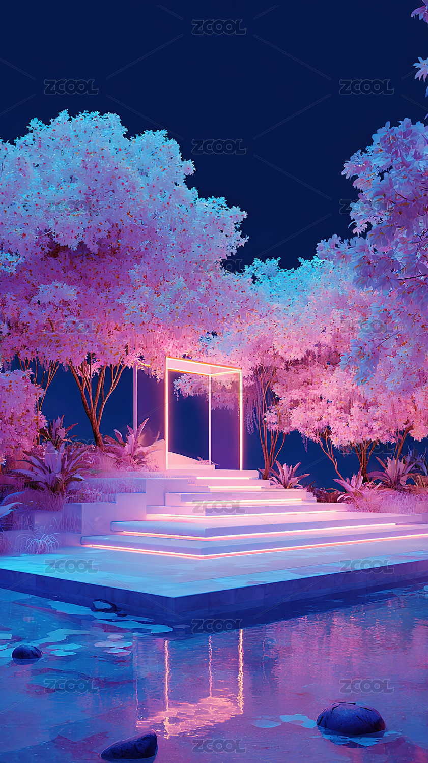 夏日,植物,梦幻,3d,展台,清新,花,创意,膨胀