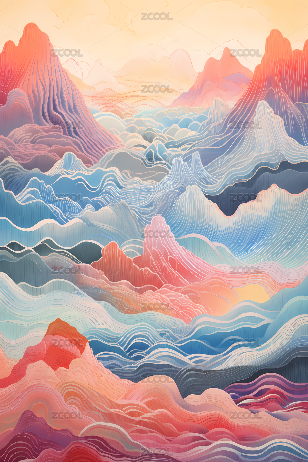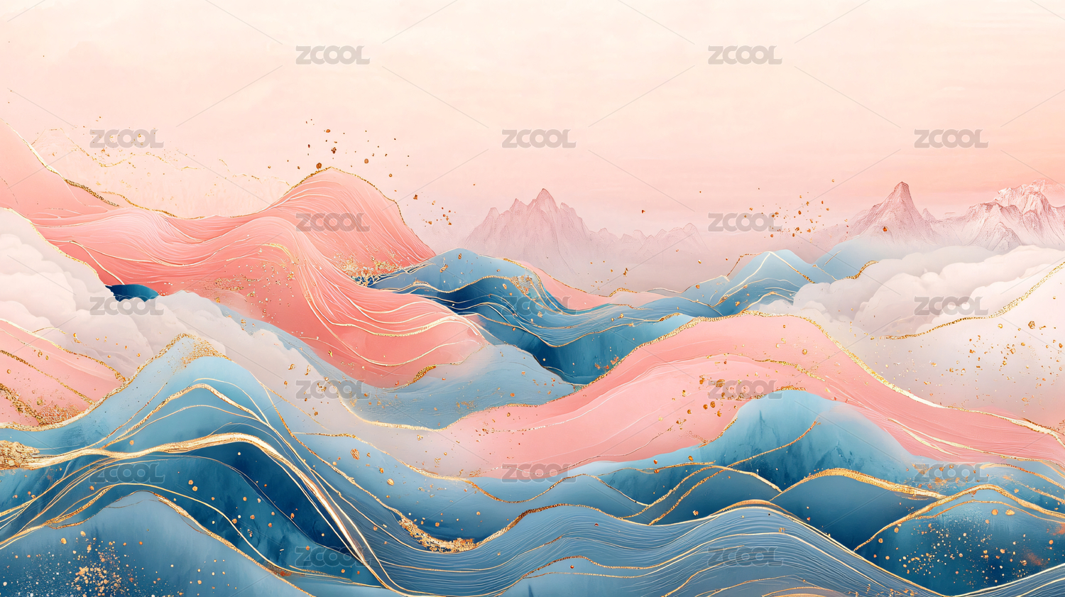 新中式,国风,山水,壁画,3d,梦幻,鎏金,超现实,水彩,水粉