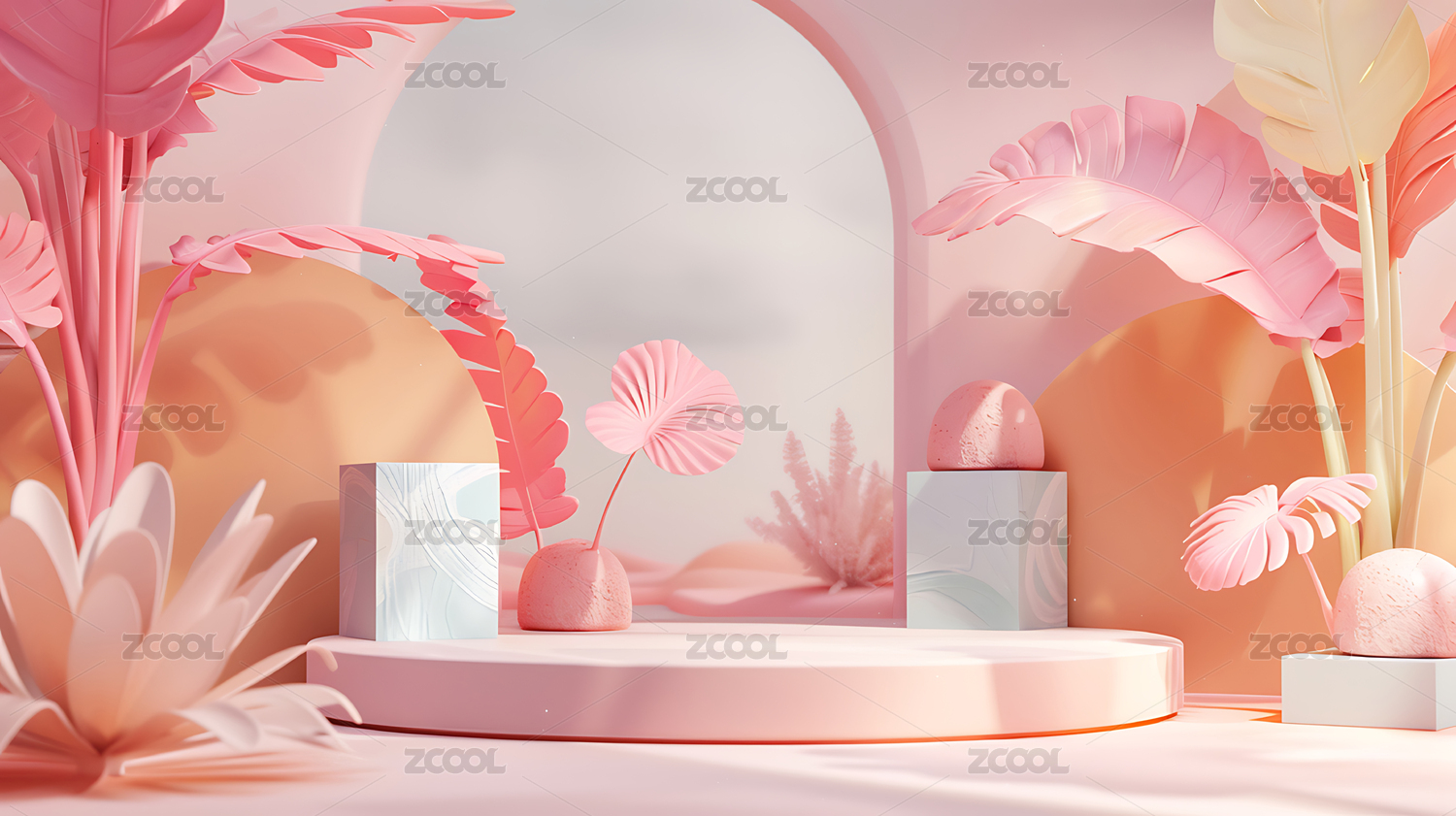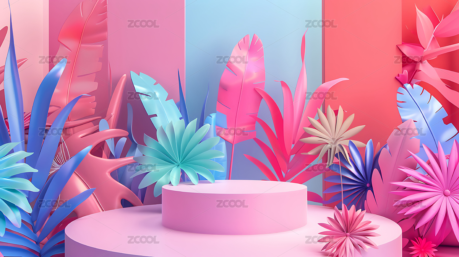 夏日,膨胀,植物,梦幻,多巴胺,糖果色,卡通,3d,c4d,清透