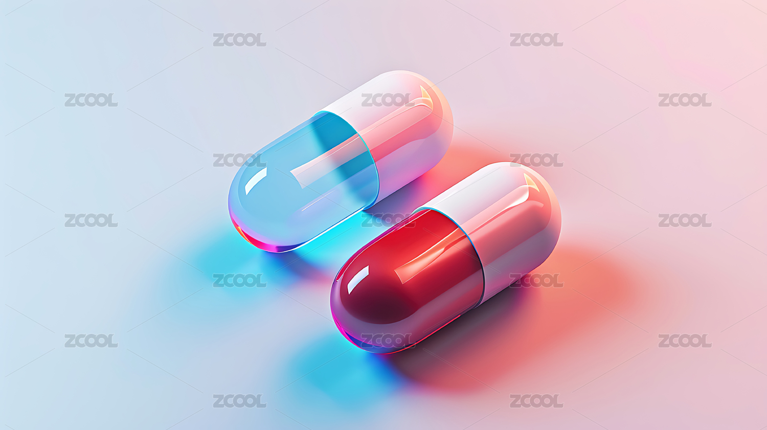 蓝粉色清新胶囊药丸