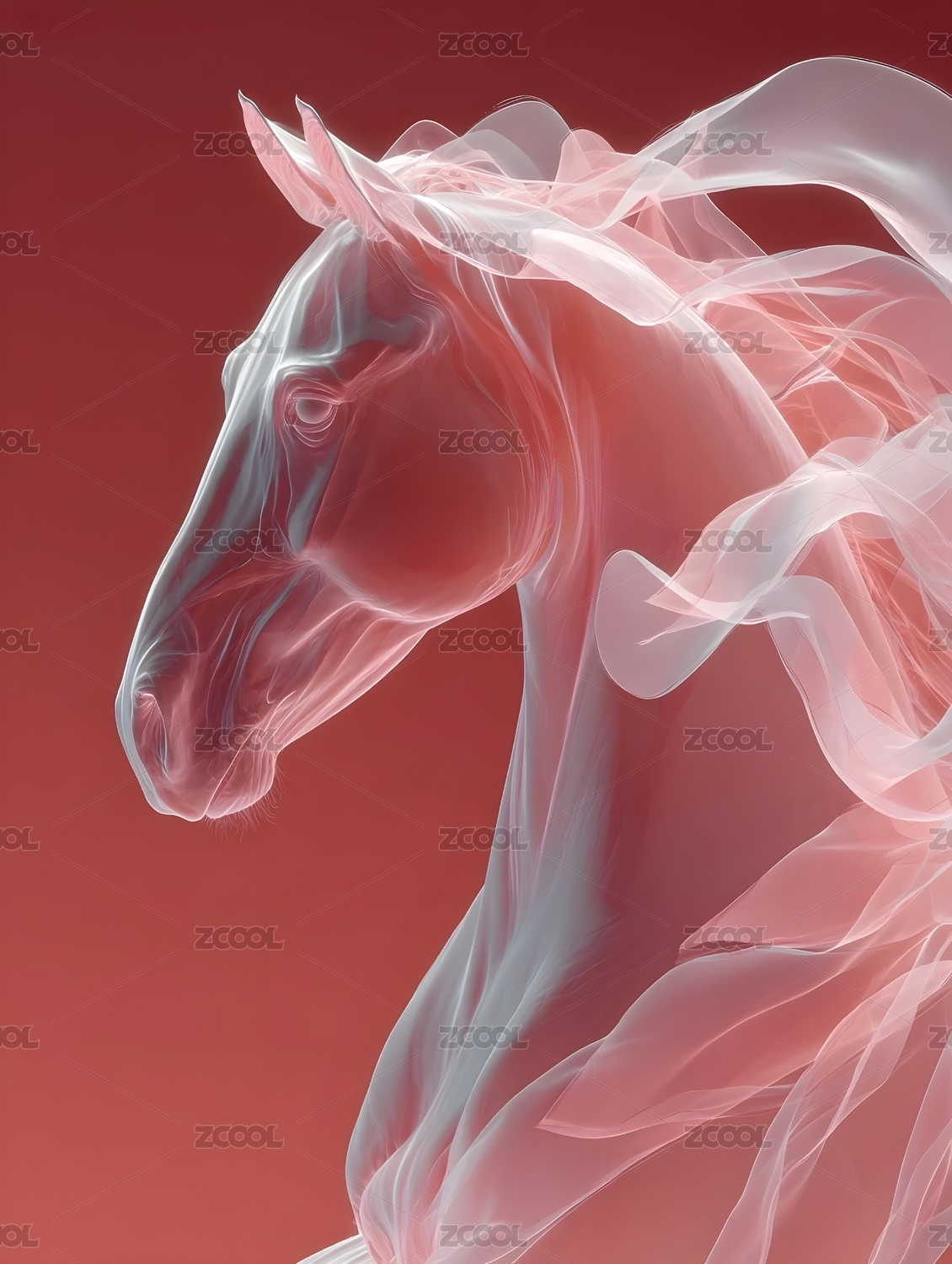 神秘黑色背景一匹晶莹剔透骏马半身特写立体