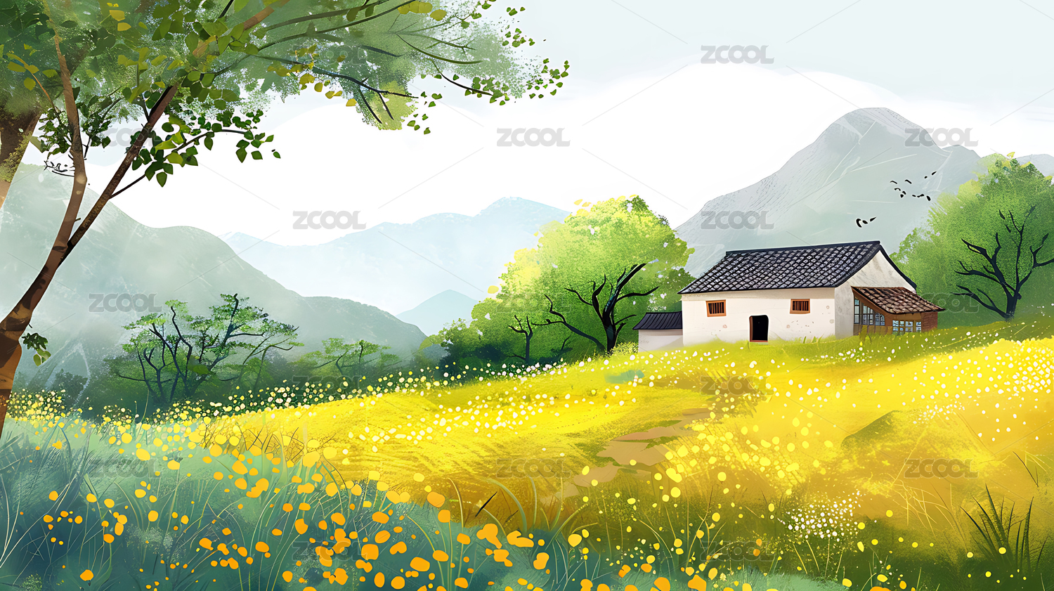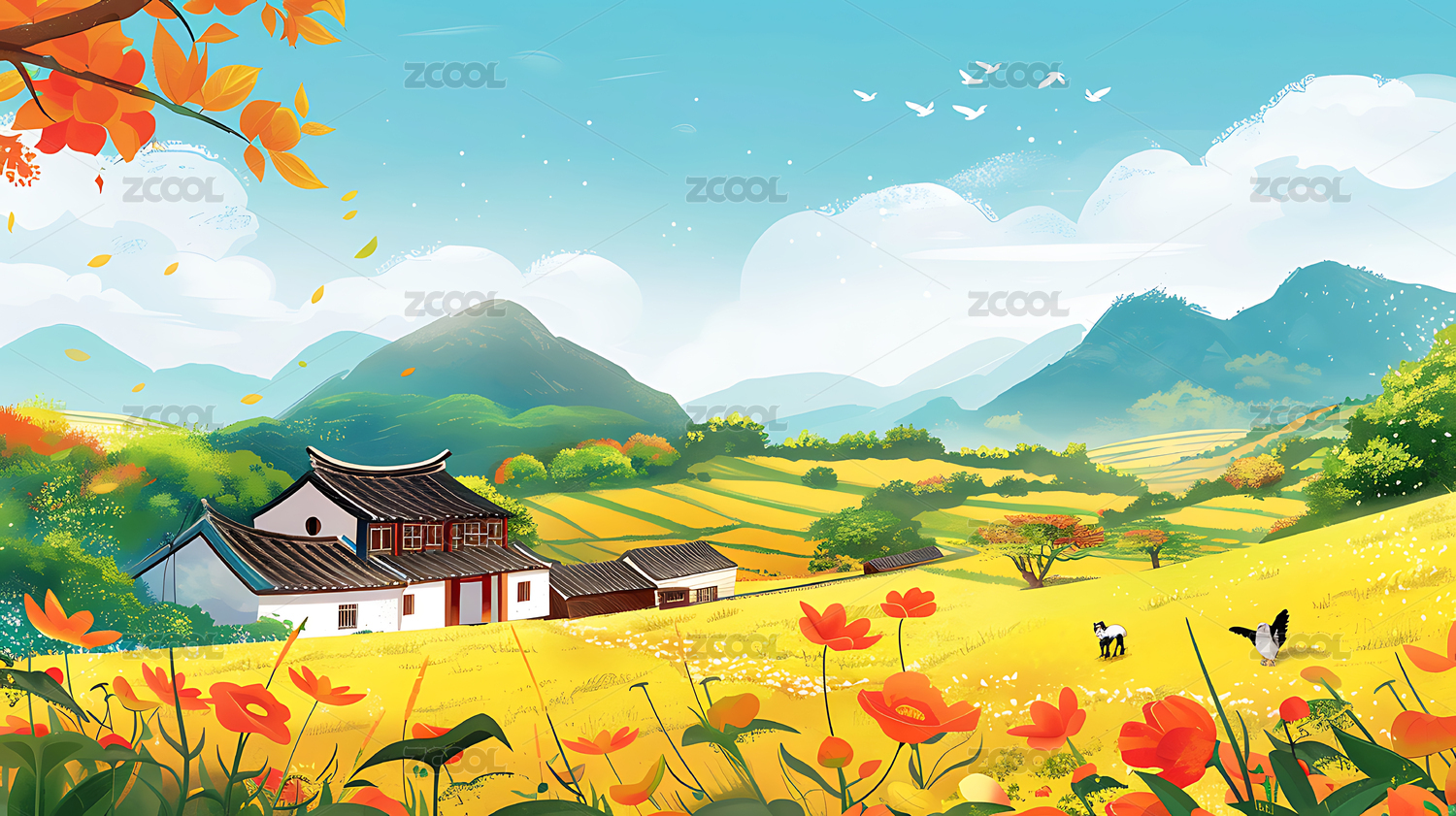 乡村田园卡通手绘插画