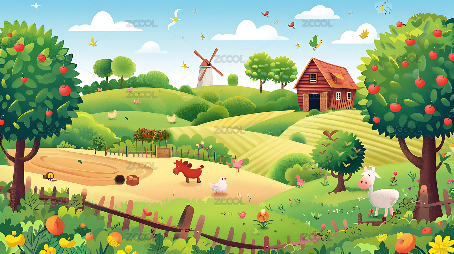 乡村,插画,绘本,风景,户外,自然,种植,园艺,景色,田野