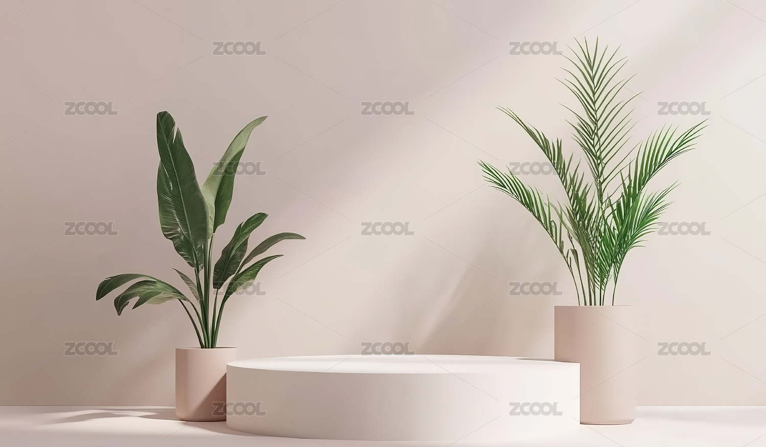 白色背景的绿植电商产品展台