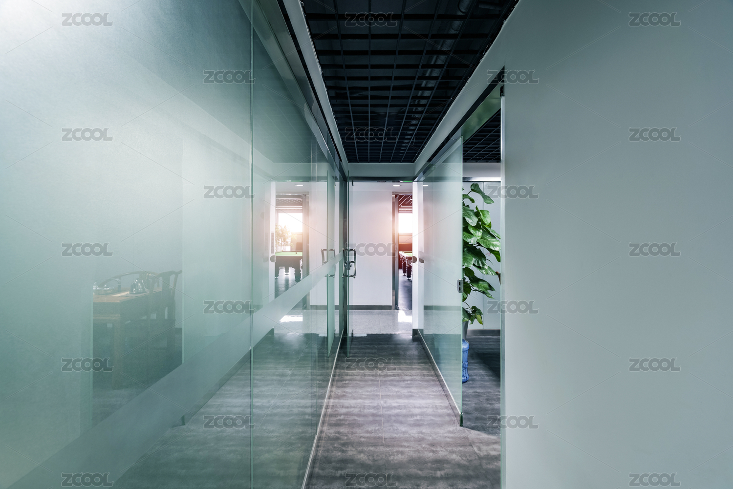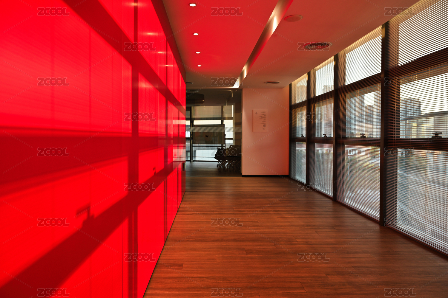 现代, 办公室, 红色, 走廊, 地板, 灯光, 窗户, 设计, 室内, 建筑