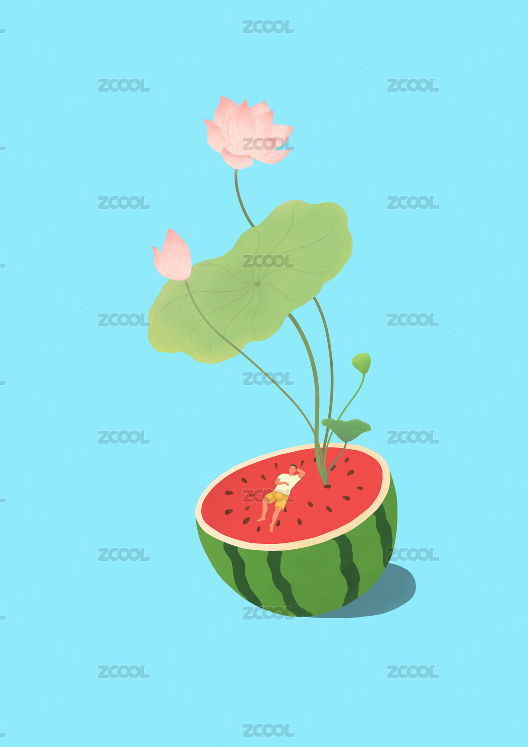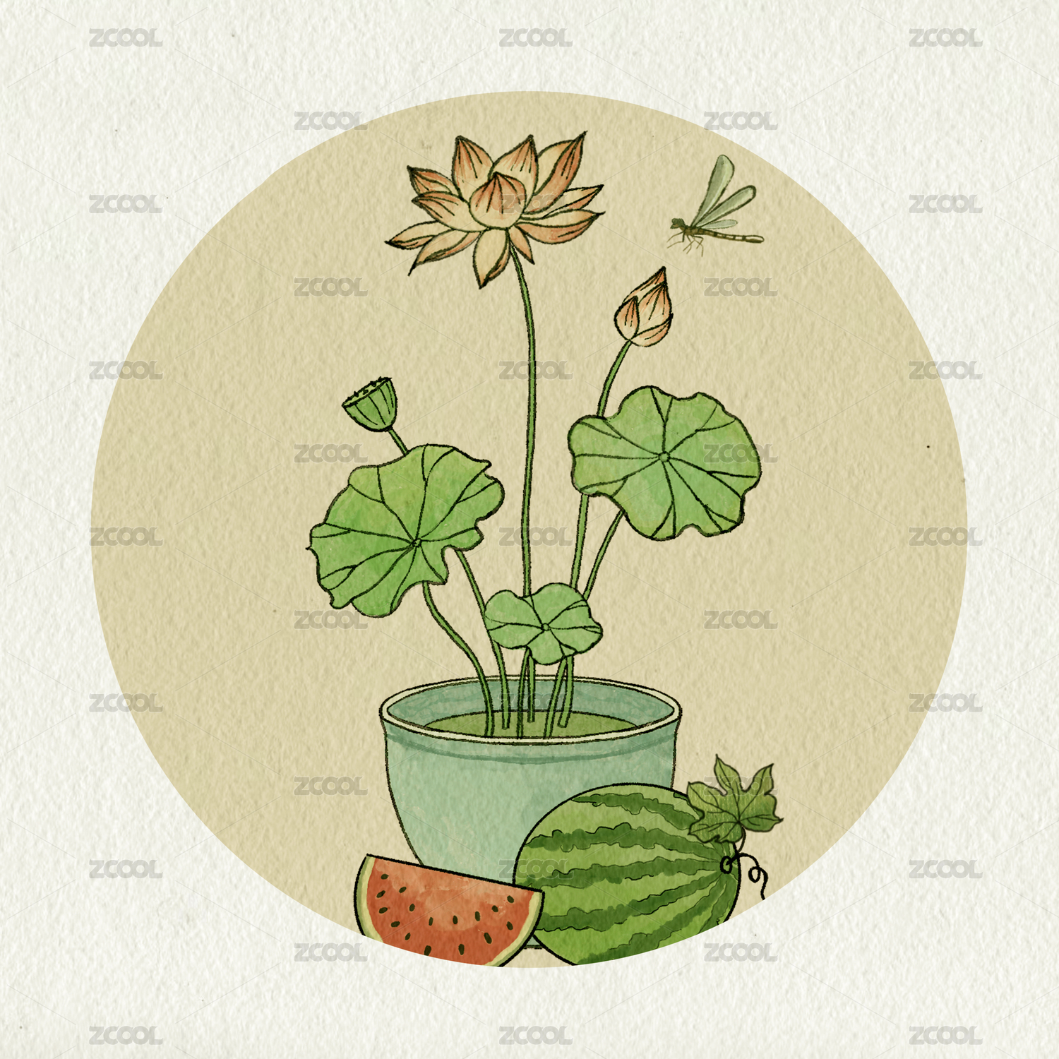 西瓜,莲蓬,莲子,荷花,扇子,蒲扇,夏天,大暑,小暑,夏至