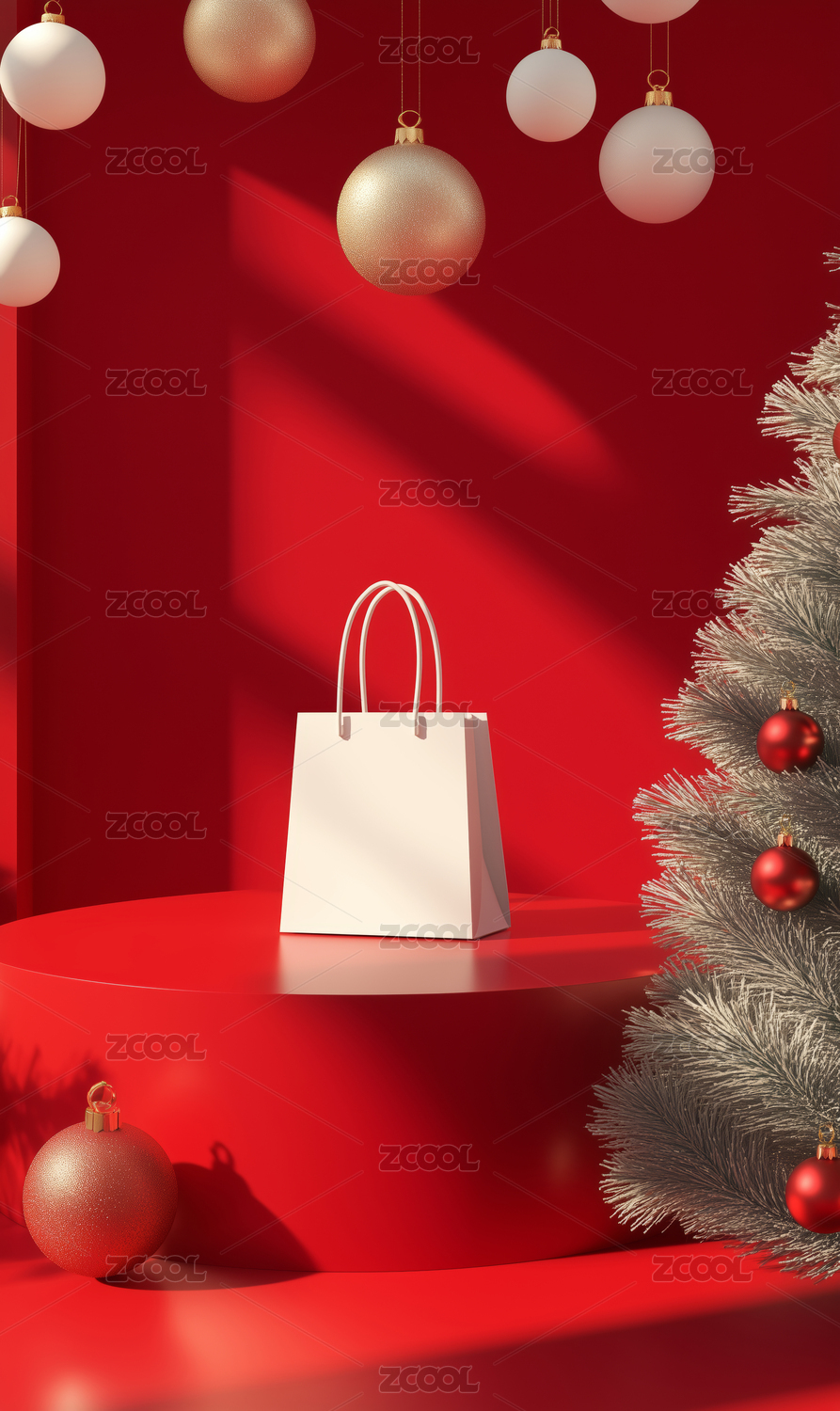 3D圣诞节礼物红色圆形拱门电商产品展台