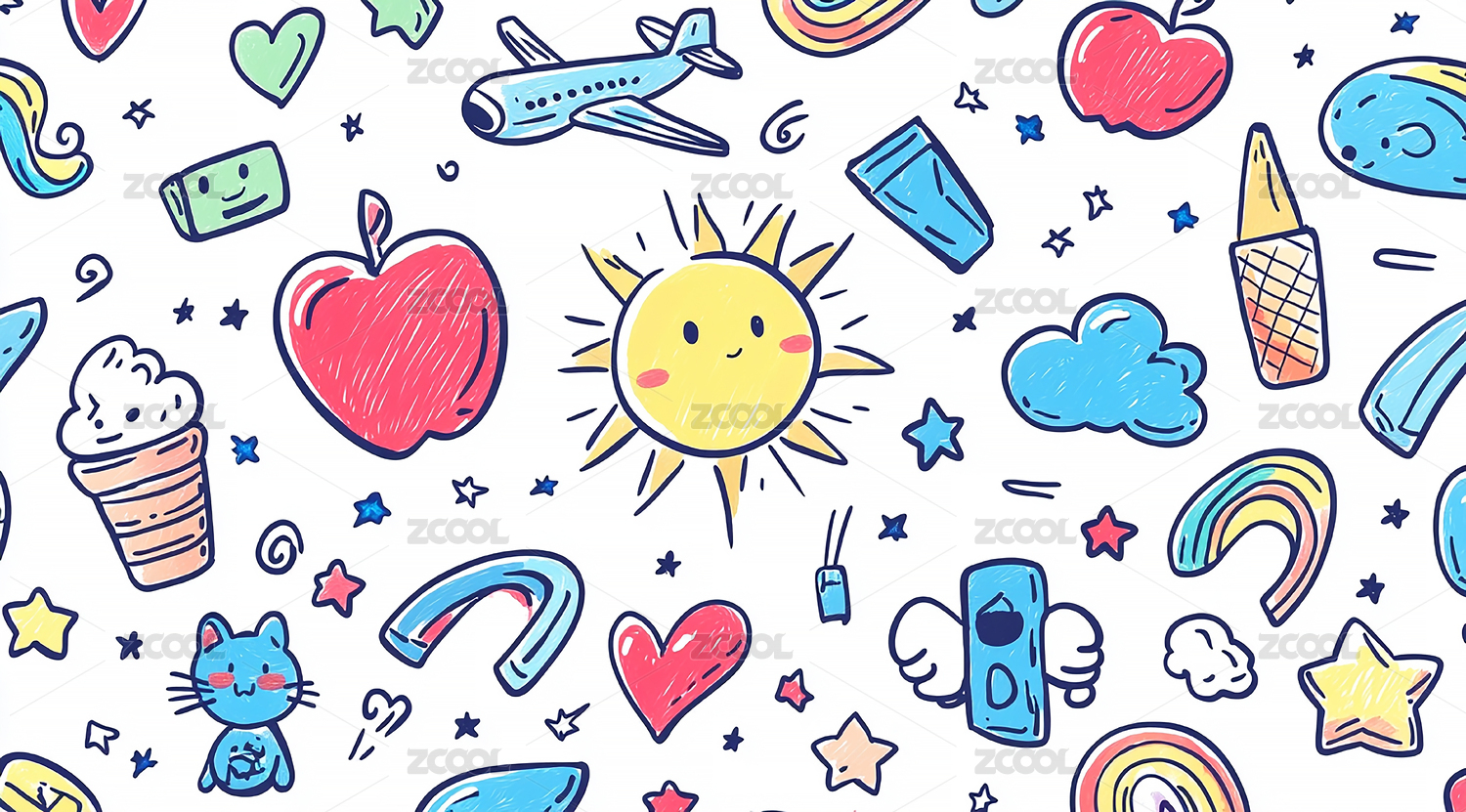 彩色涂鸦风卡通底纹