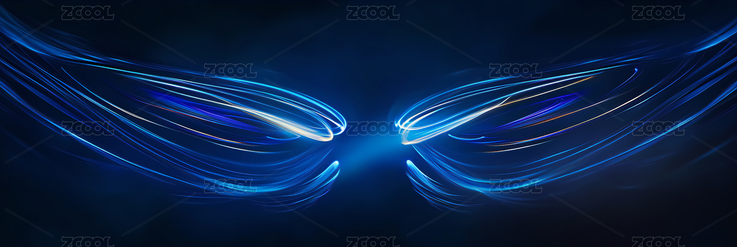 蓝色光速线翅膀商务科技风背景