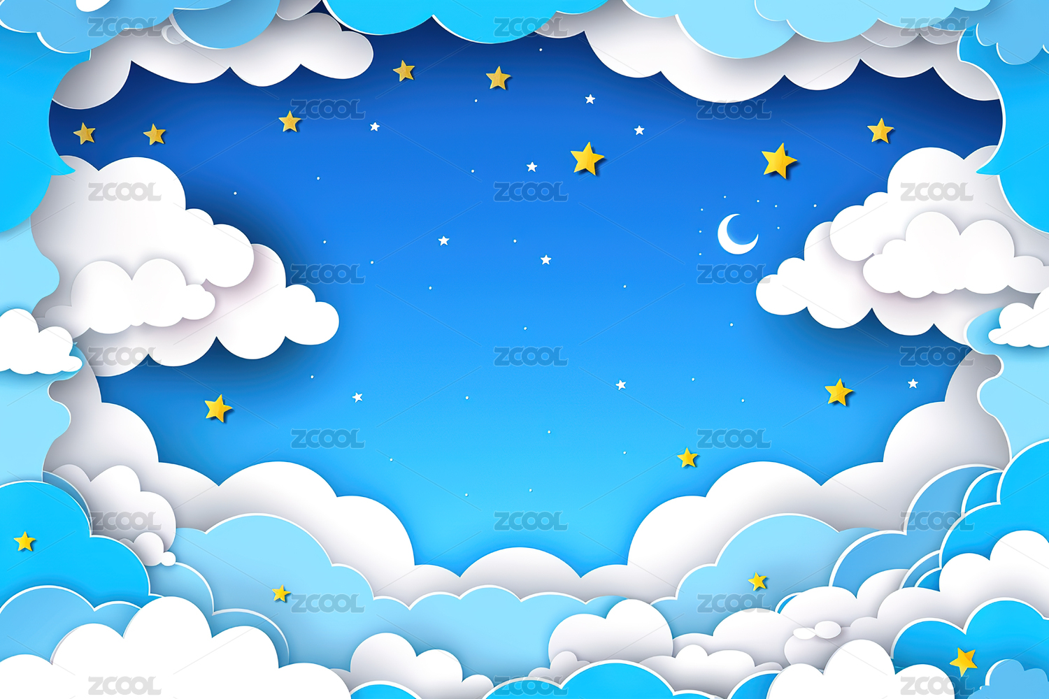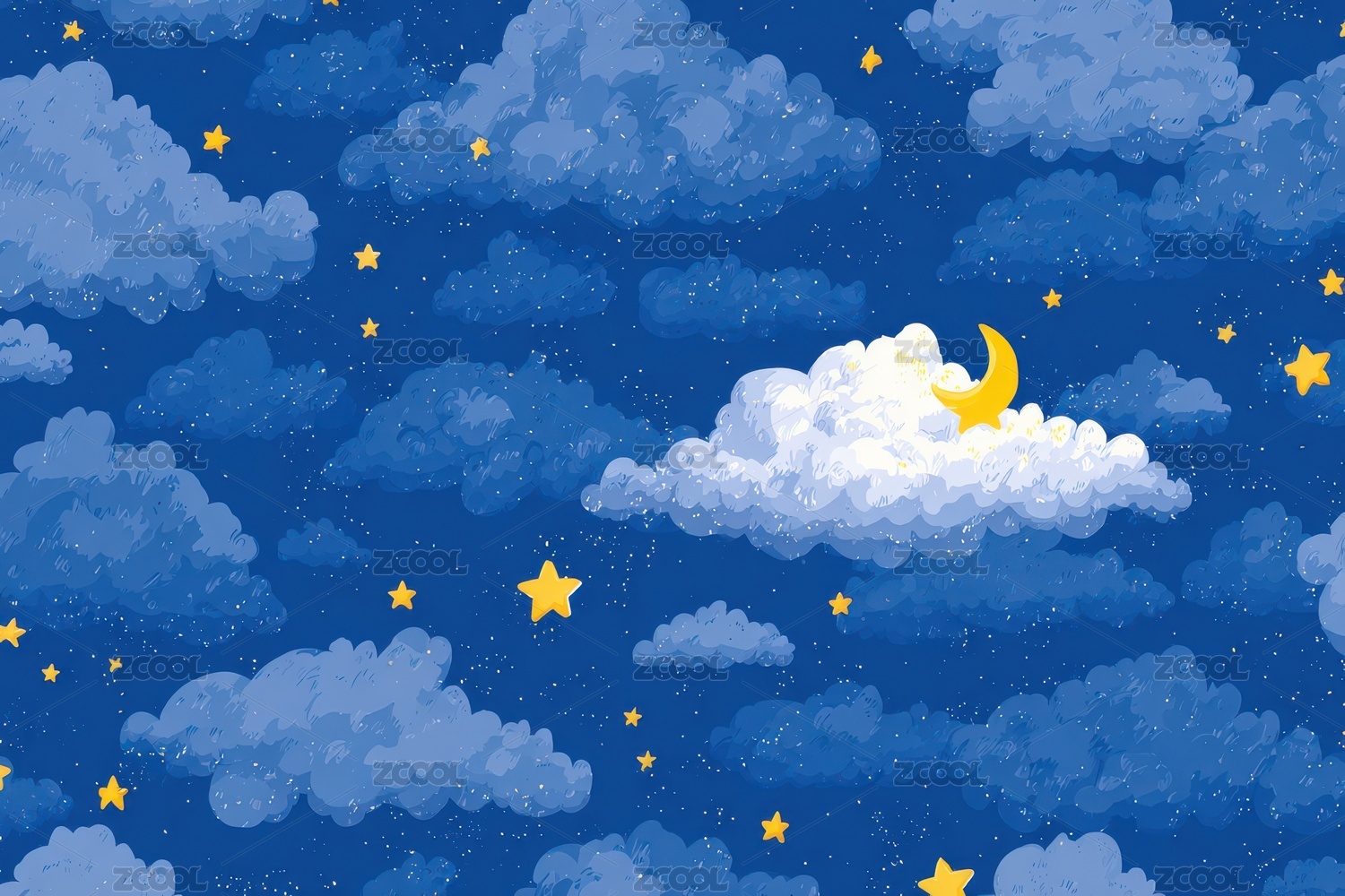 夜空中的星星、月亮和云朵,可爱漫画背景