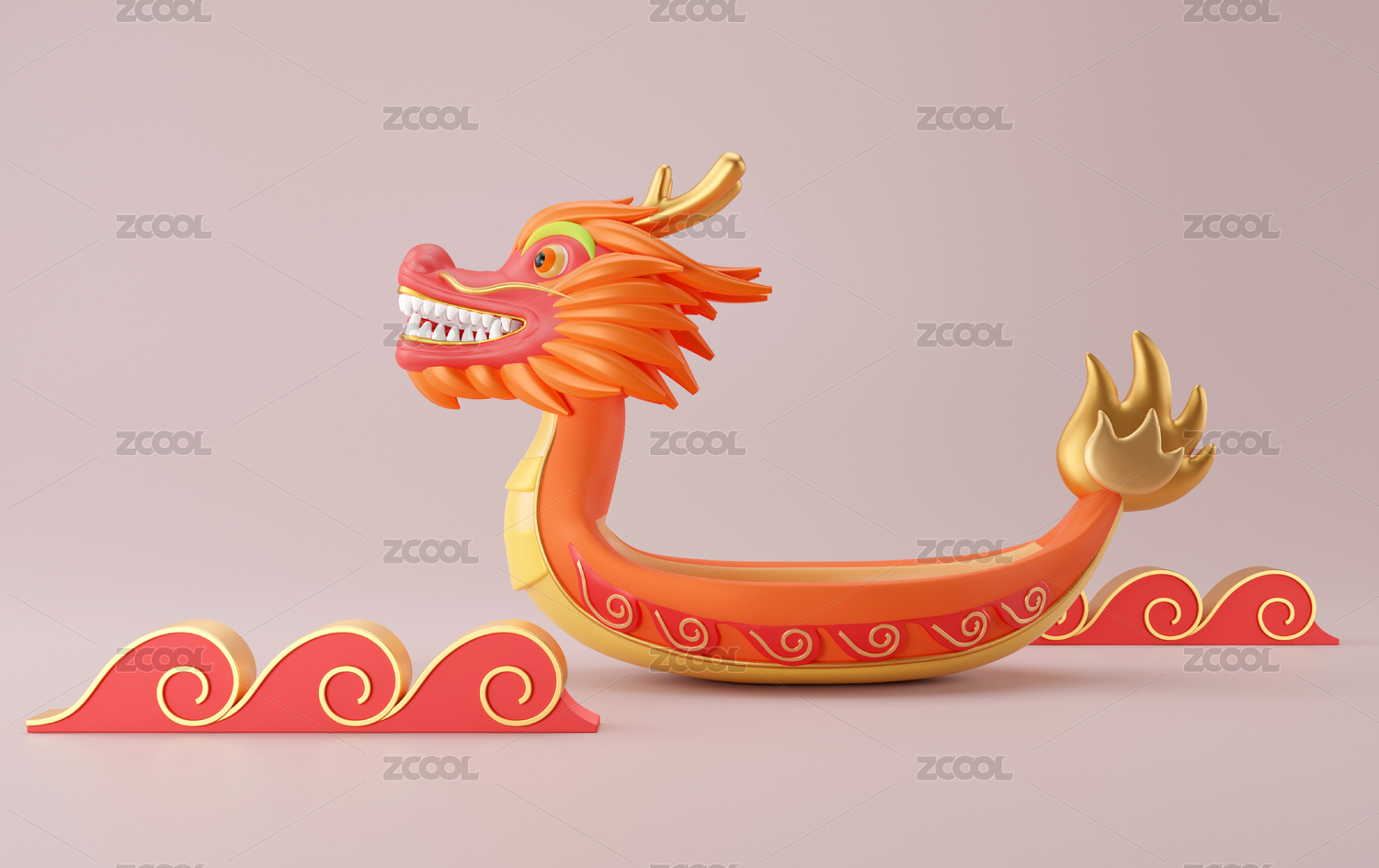 手绘矢量龙舟免抠龙舟船端午海报设计素材