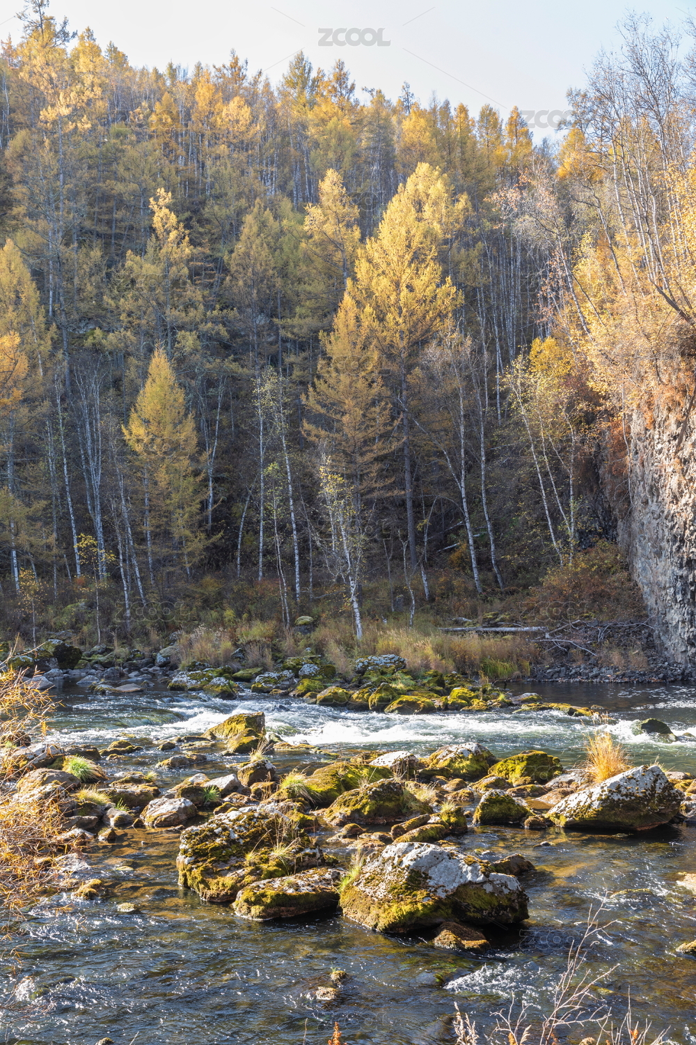 中国内蒙古阿尔山森林国家公园三潭峡秋景