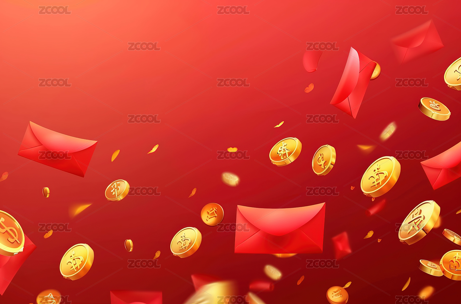 新年元素红包周围散布金币