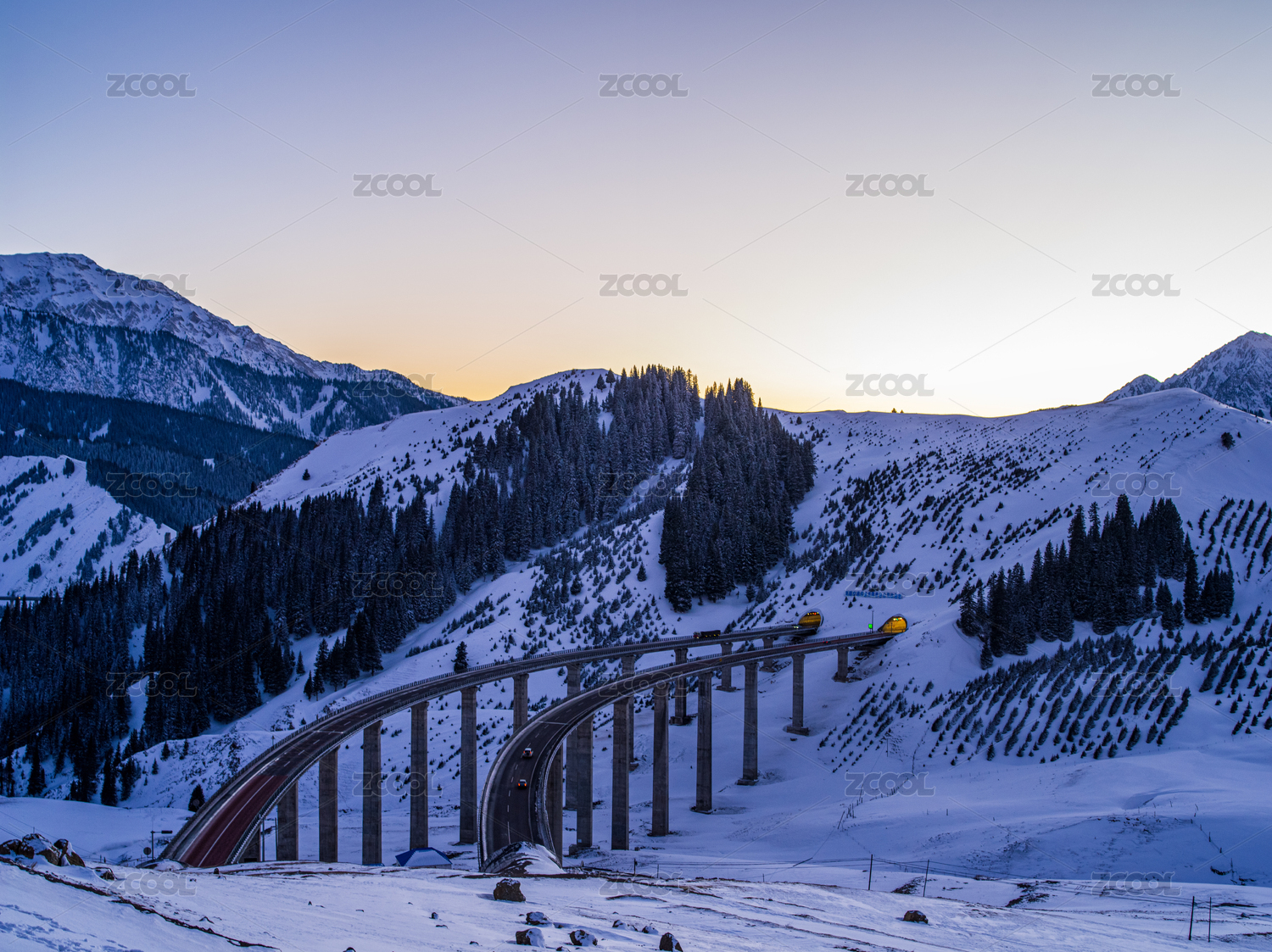 中国新疆伊犁哈萨克自治州霍城县果子沟大桥冬天