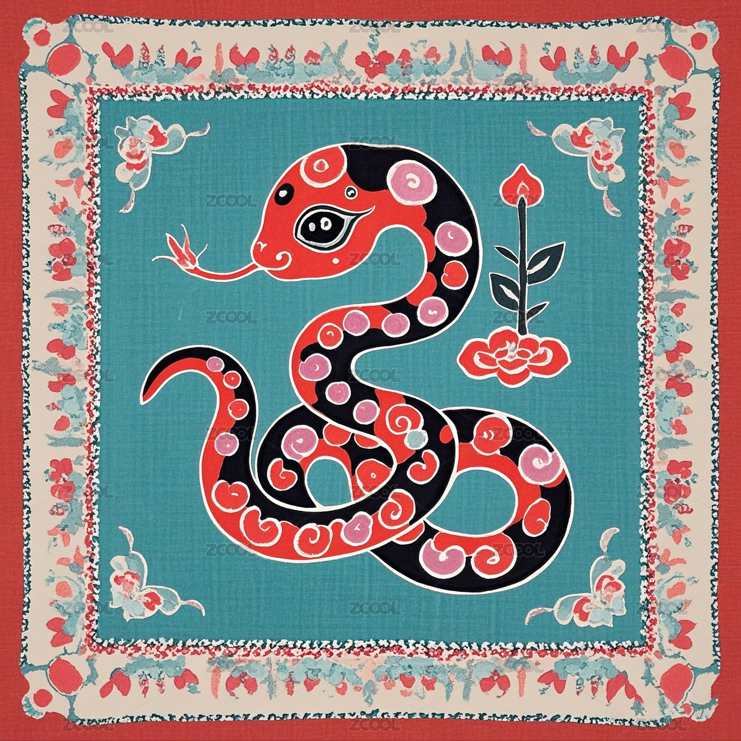 中国民族风的蛇宝宝图案纹样
