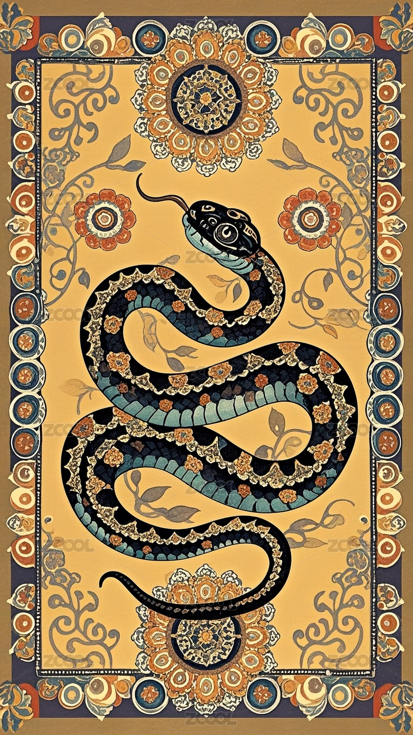 中国古典壁画风格的蛇主题图案纹样
