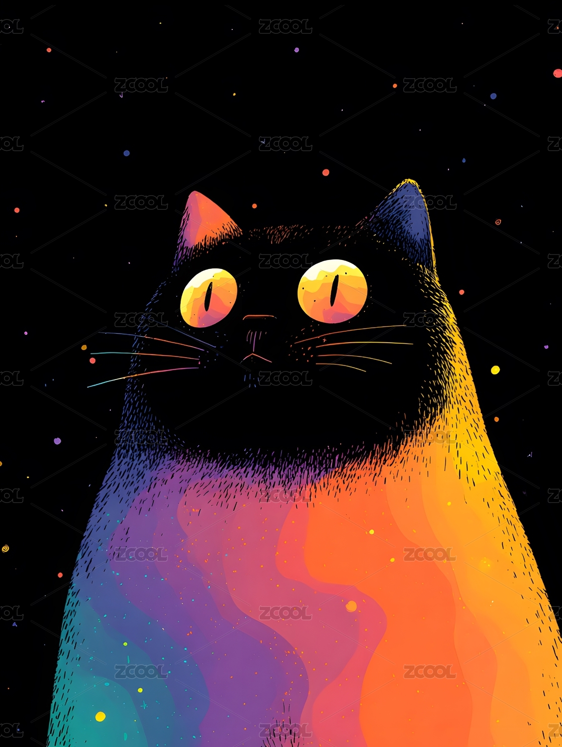 黑猫仰望天空色彩绚丽