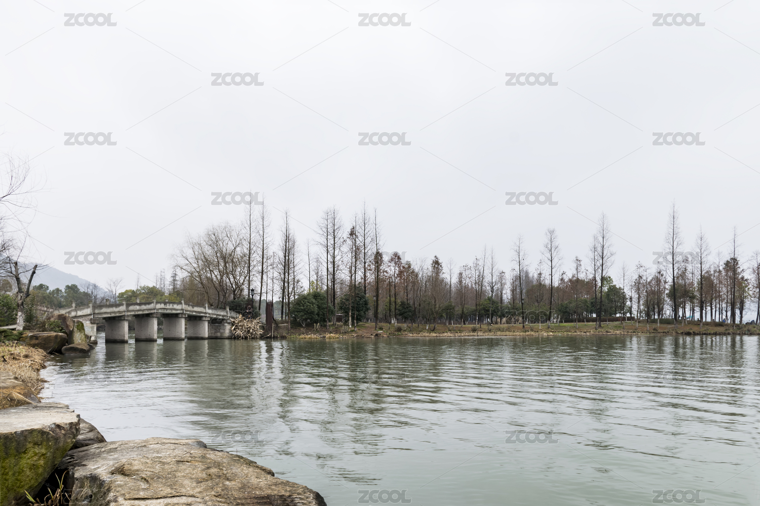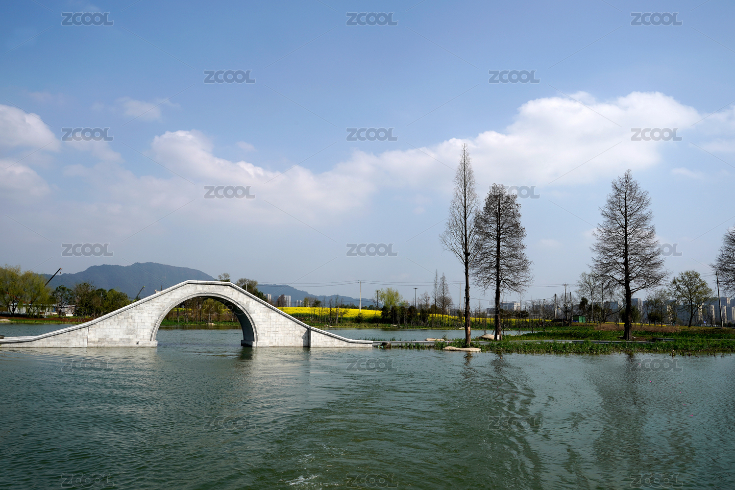 公园的拱桥和落羽杉