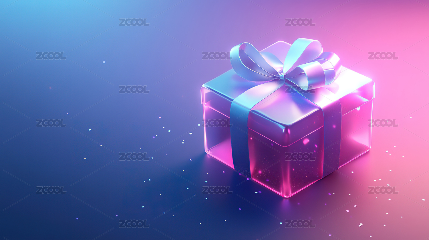 粉色礼物盒与蓝色发光背景的节日气氛