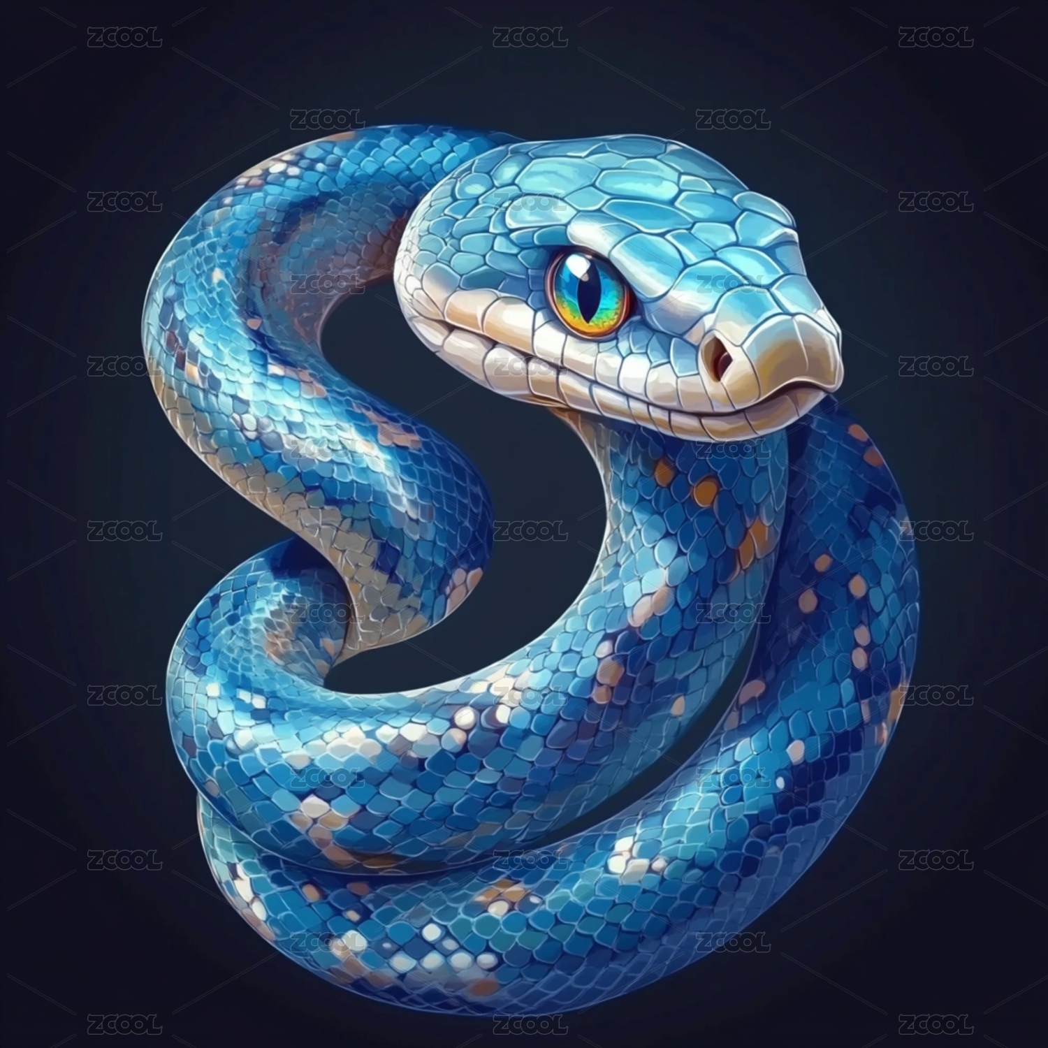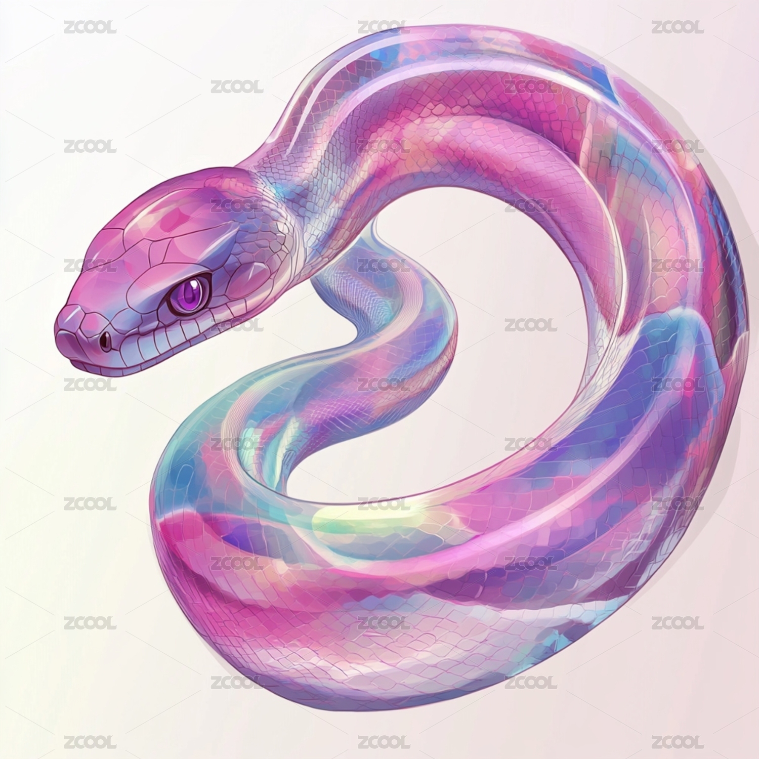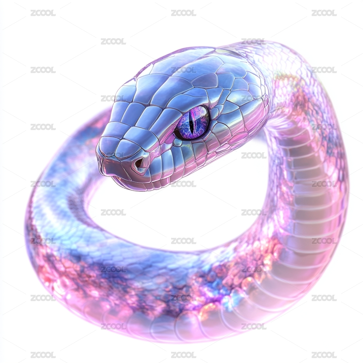 氛围,3D,立体感,玻璃质感,蛇,十二生肖,蛇年