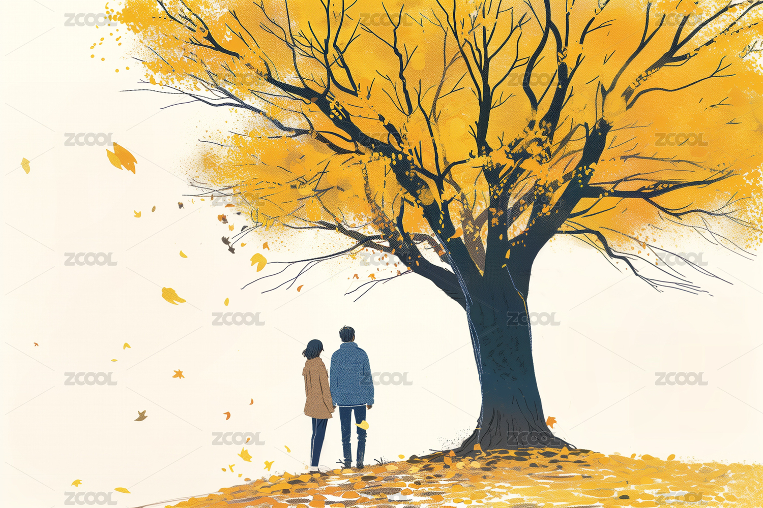 幸福,户外,插画,生活方式,传统,秋天,季节,田野,情侣,秋景