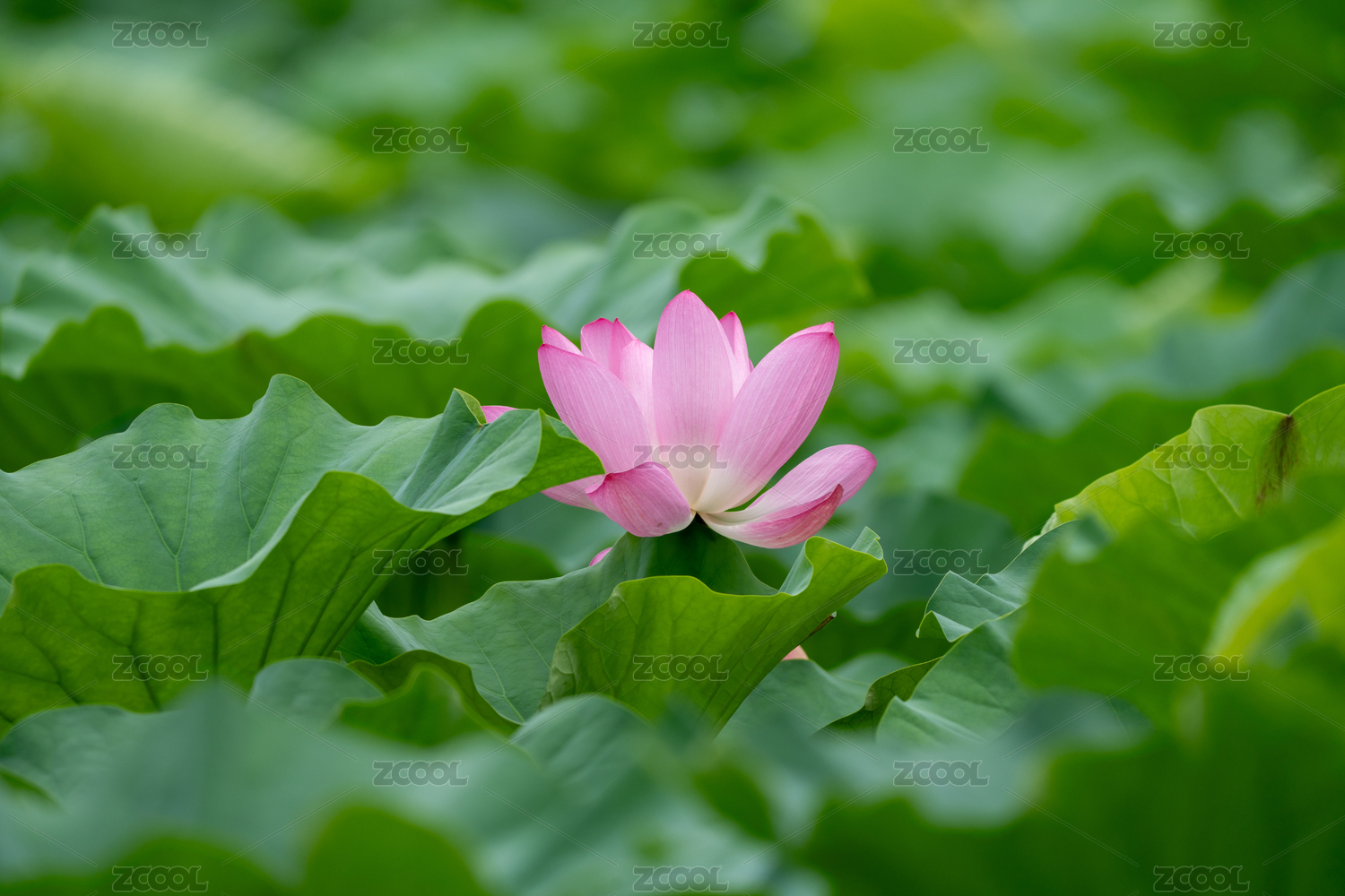 荷花盛开绿意盎然的荷塘一角