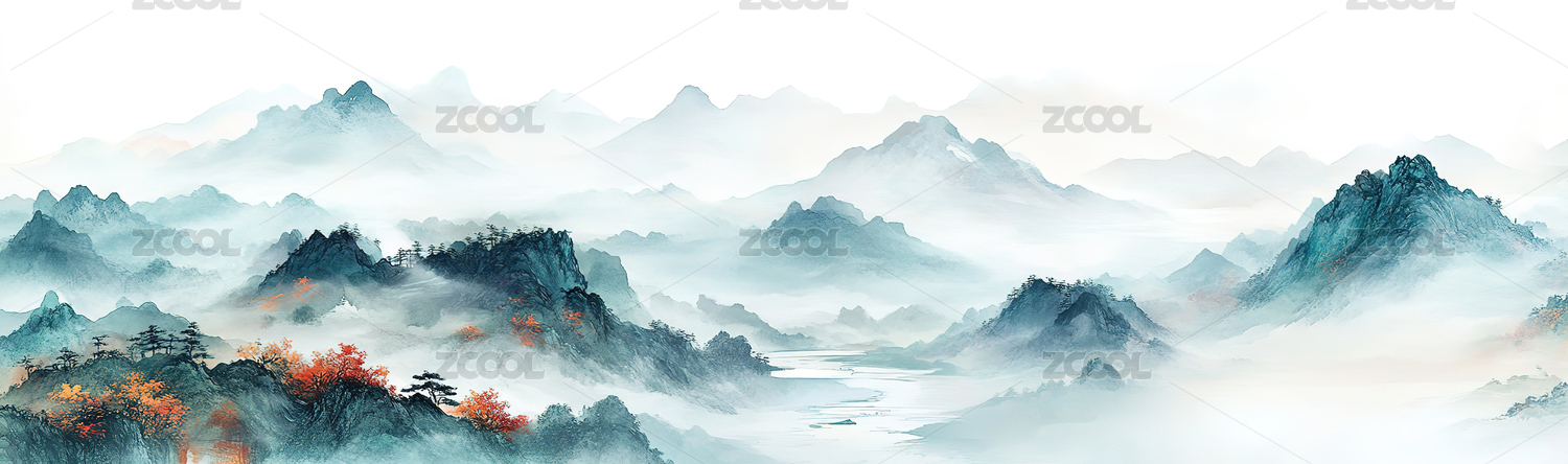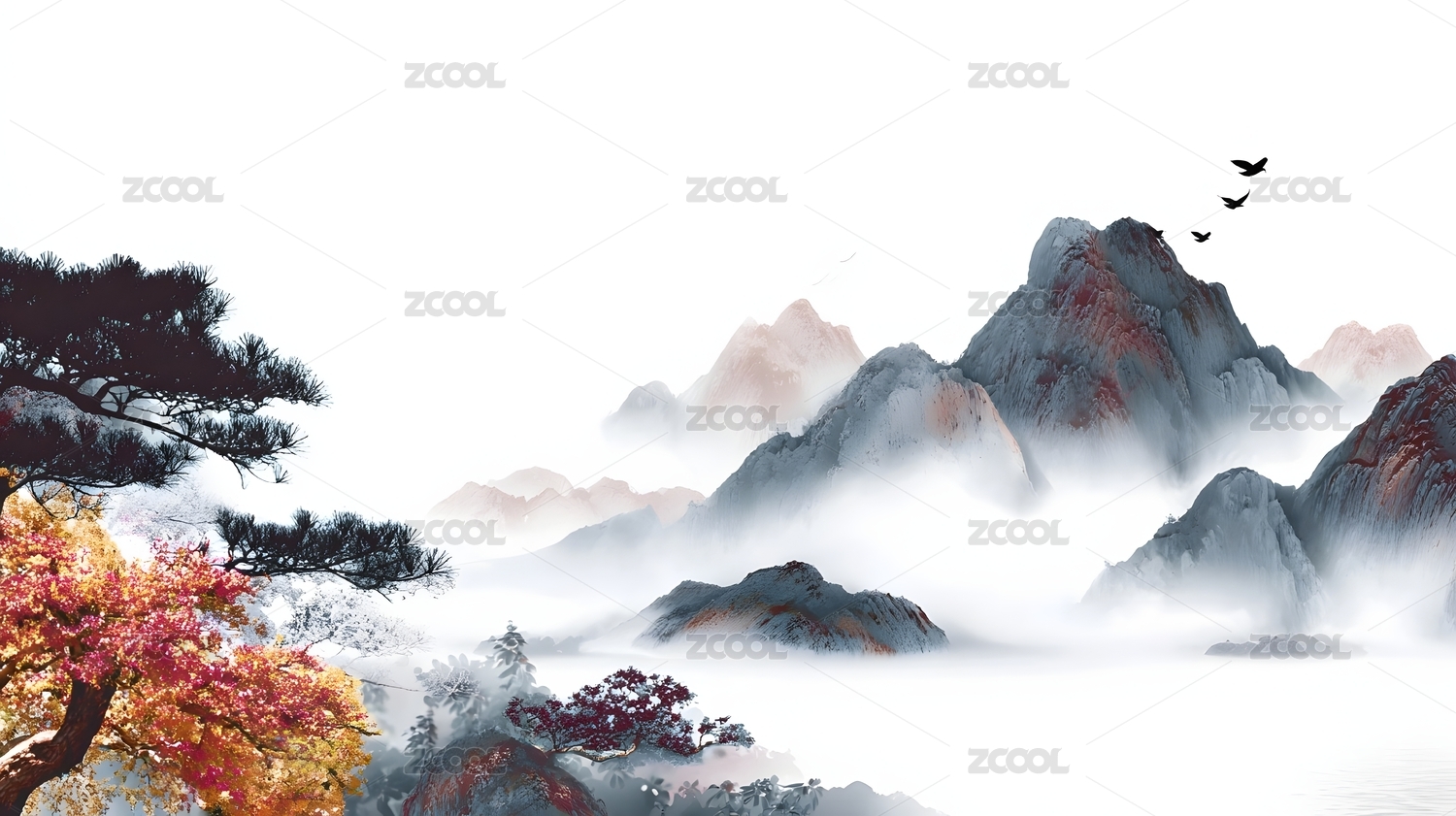 AIGC202407,重阳节,夕阳,山峰,枫叶,秋季,山水