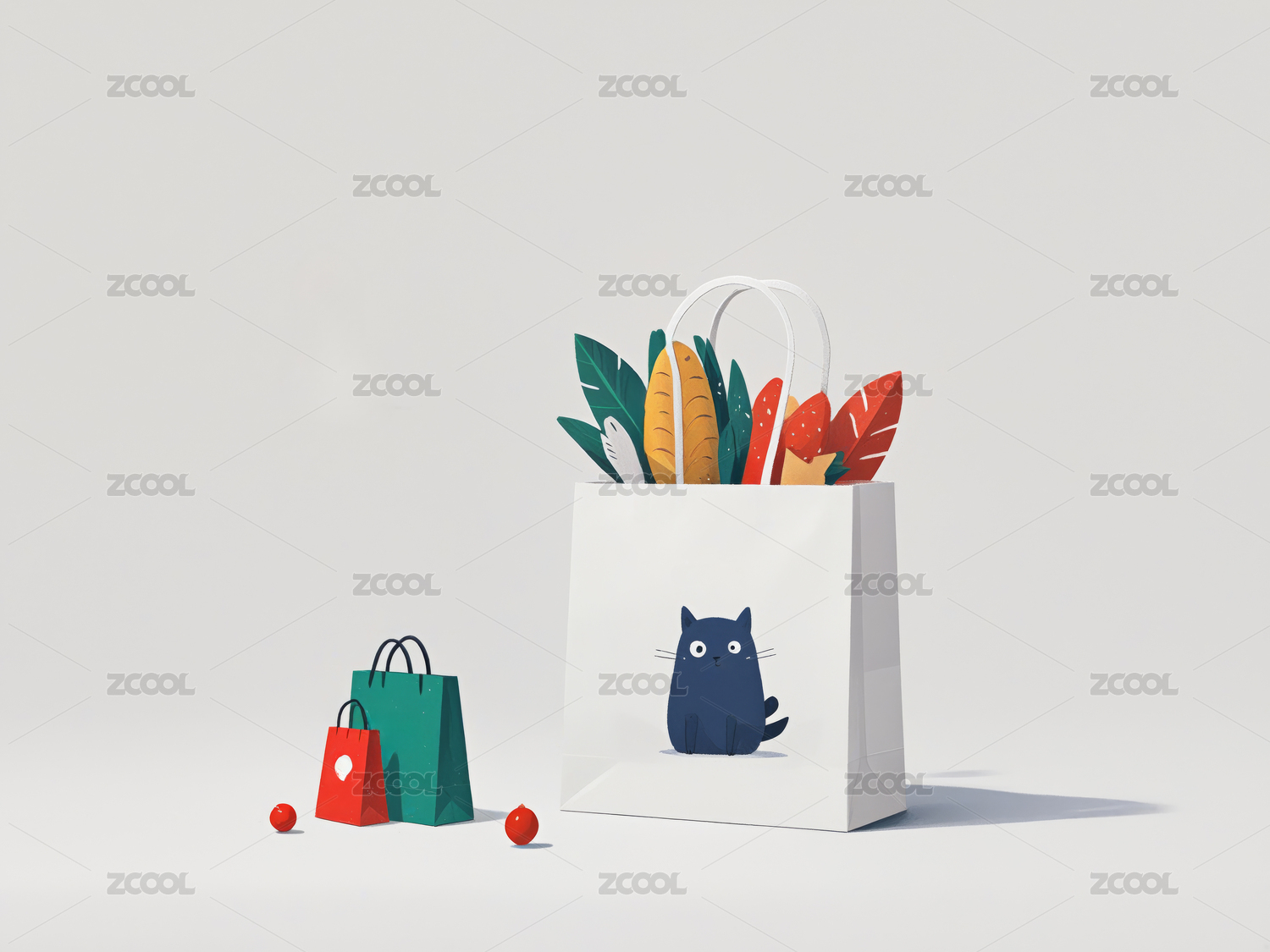 DXCZ202401,购物,购物袋,卡通插画,卡通画,极简