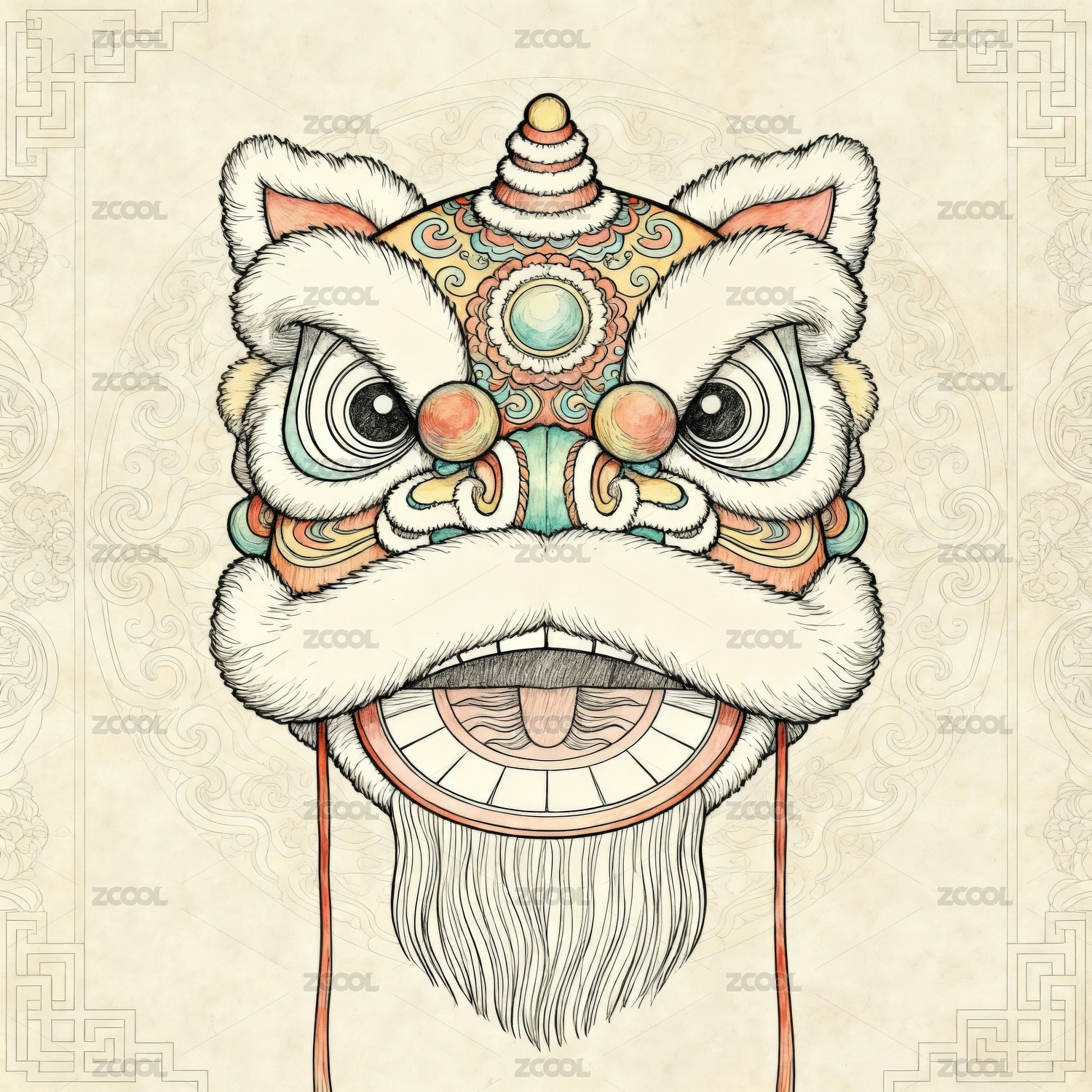 中国传统舞狮头图案
