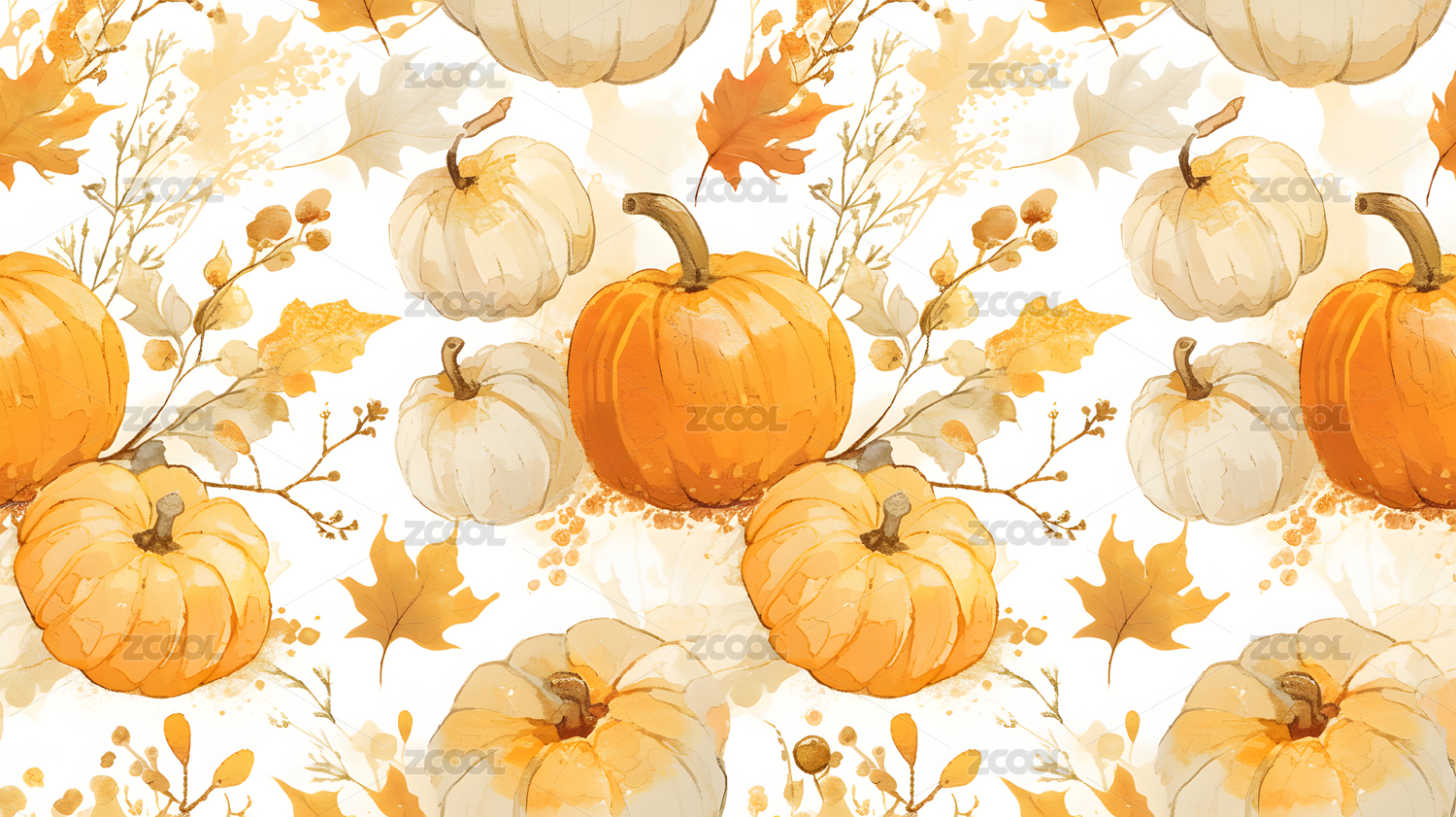 秋天成熟的黄色南瓜四方连续无缝拼接背景