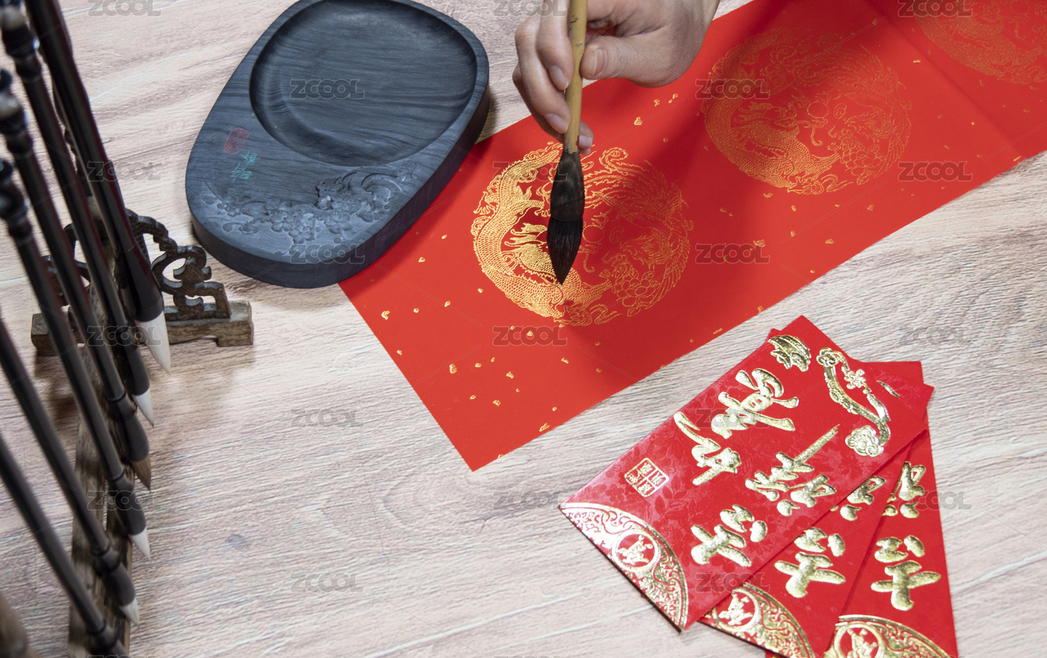 写春联,春联,对联,新年,拜年,过年,年味,红包,留白,笔墨纸砚