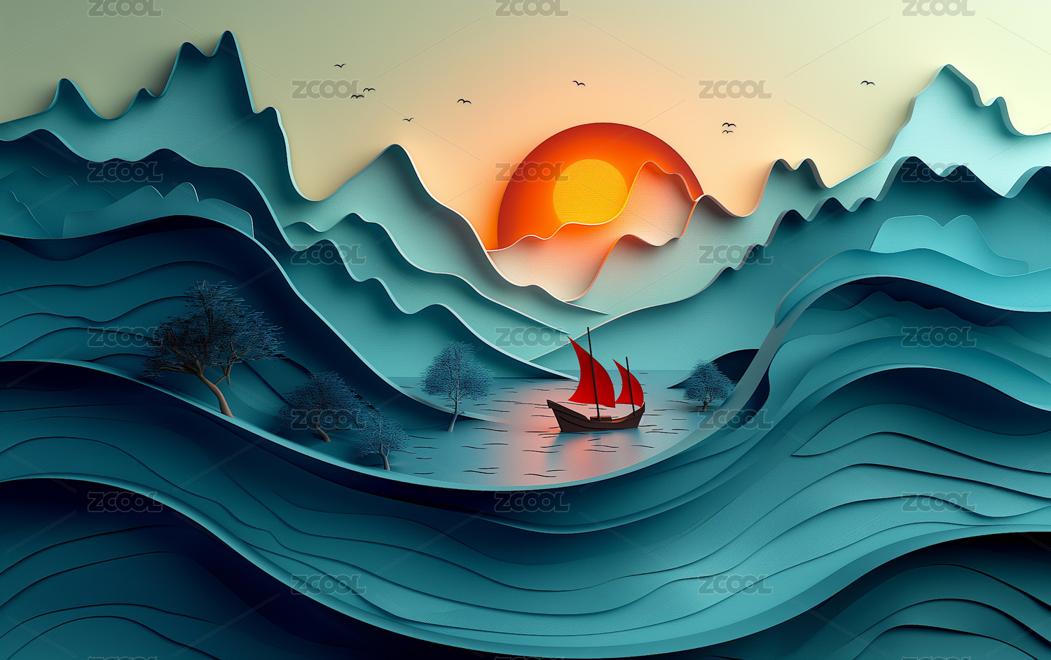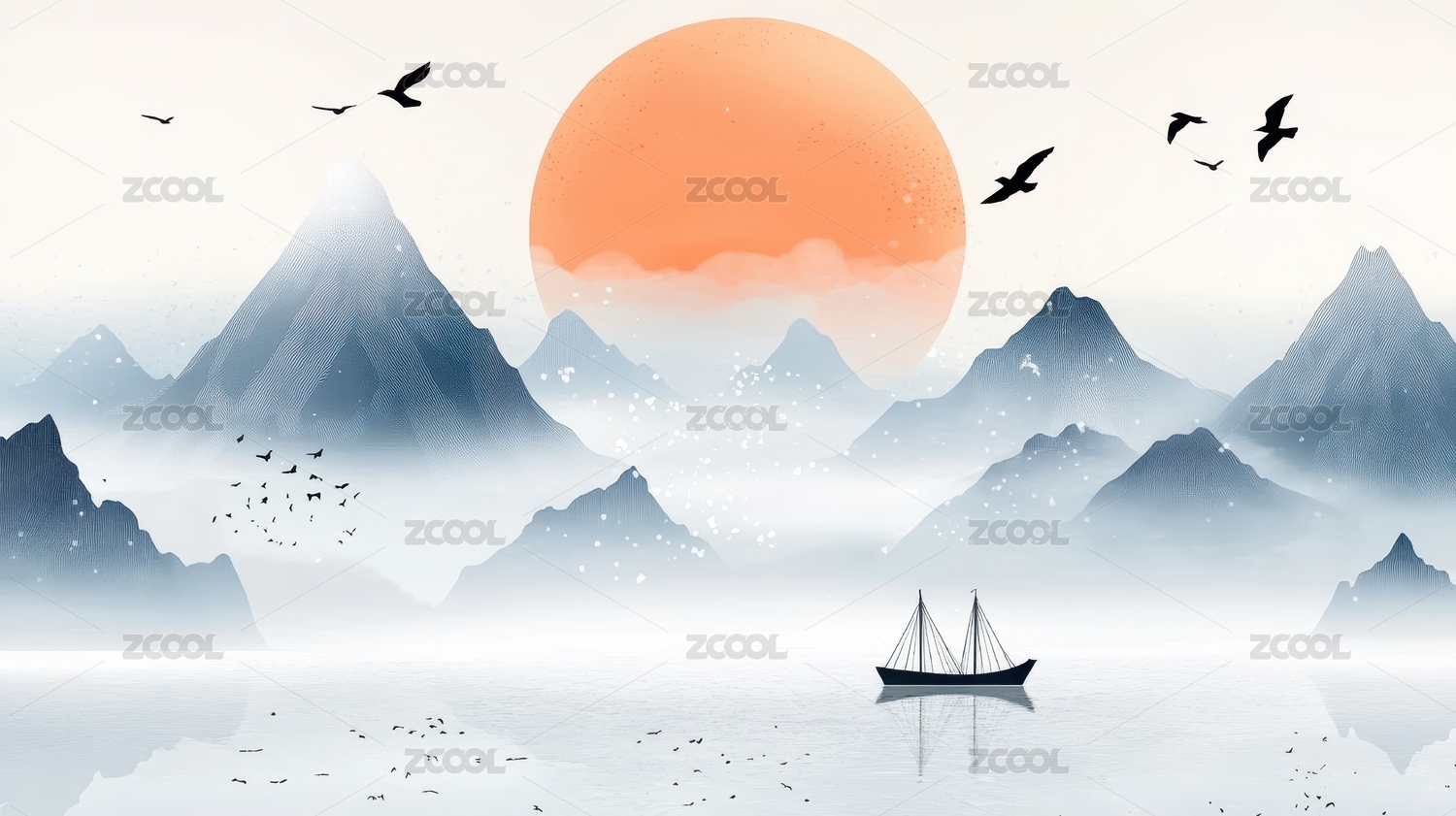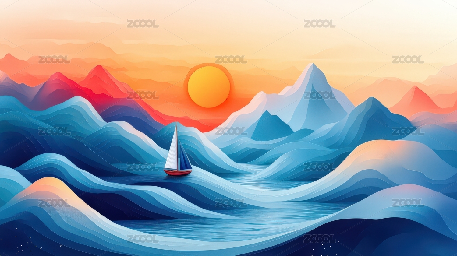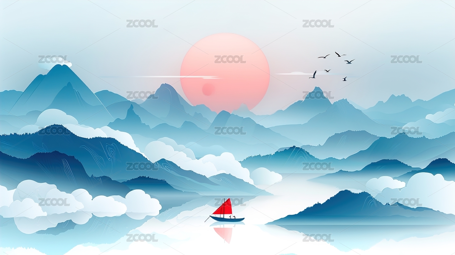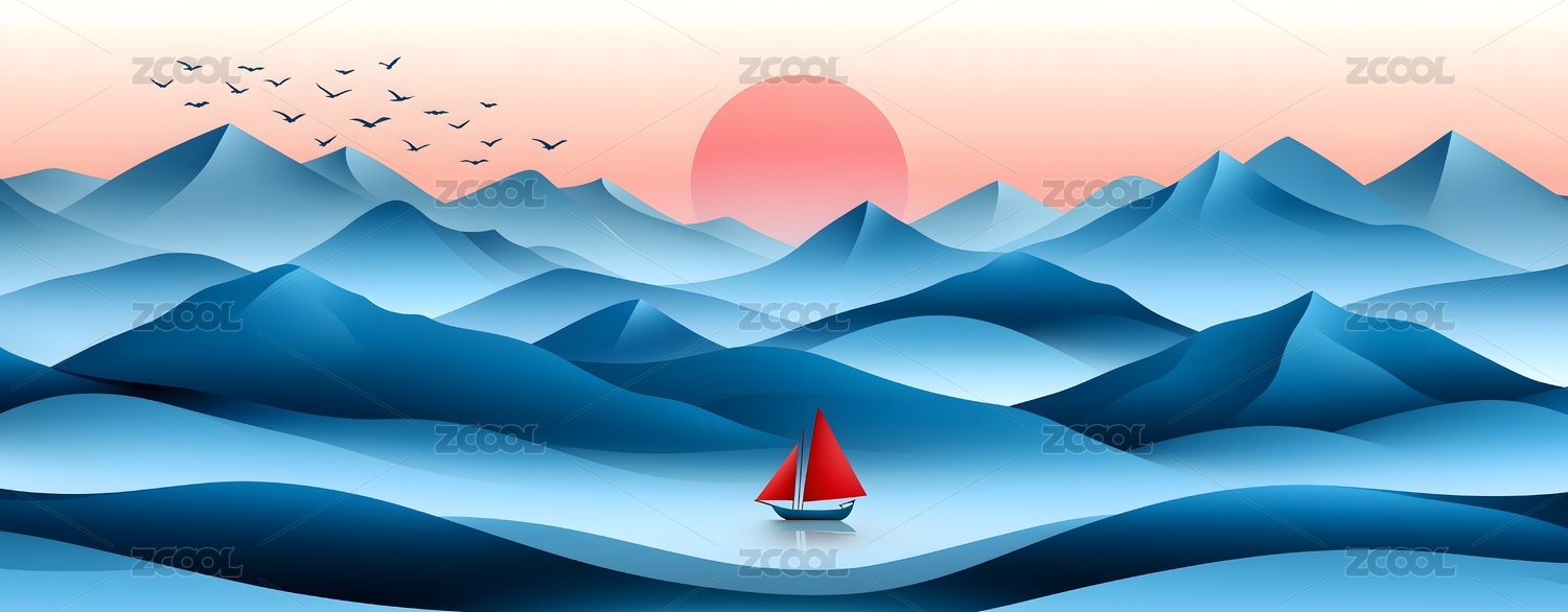 日落,山脉,远山,蓝色,平和,艺术,静谧,云朵,橙色,唯美