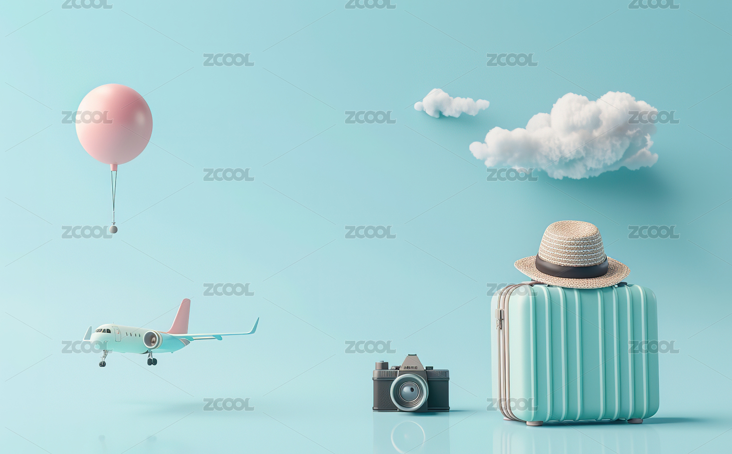 行李箱,度假,旅行,休闲,放松,橙色,出行,飞机,冒险,探索