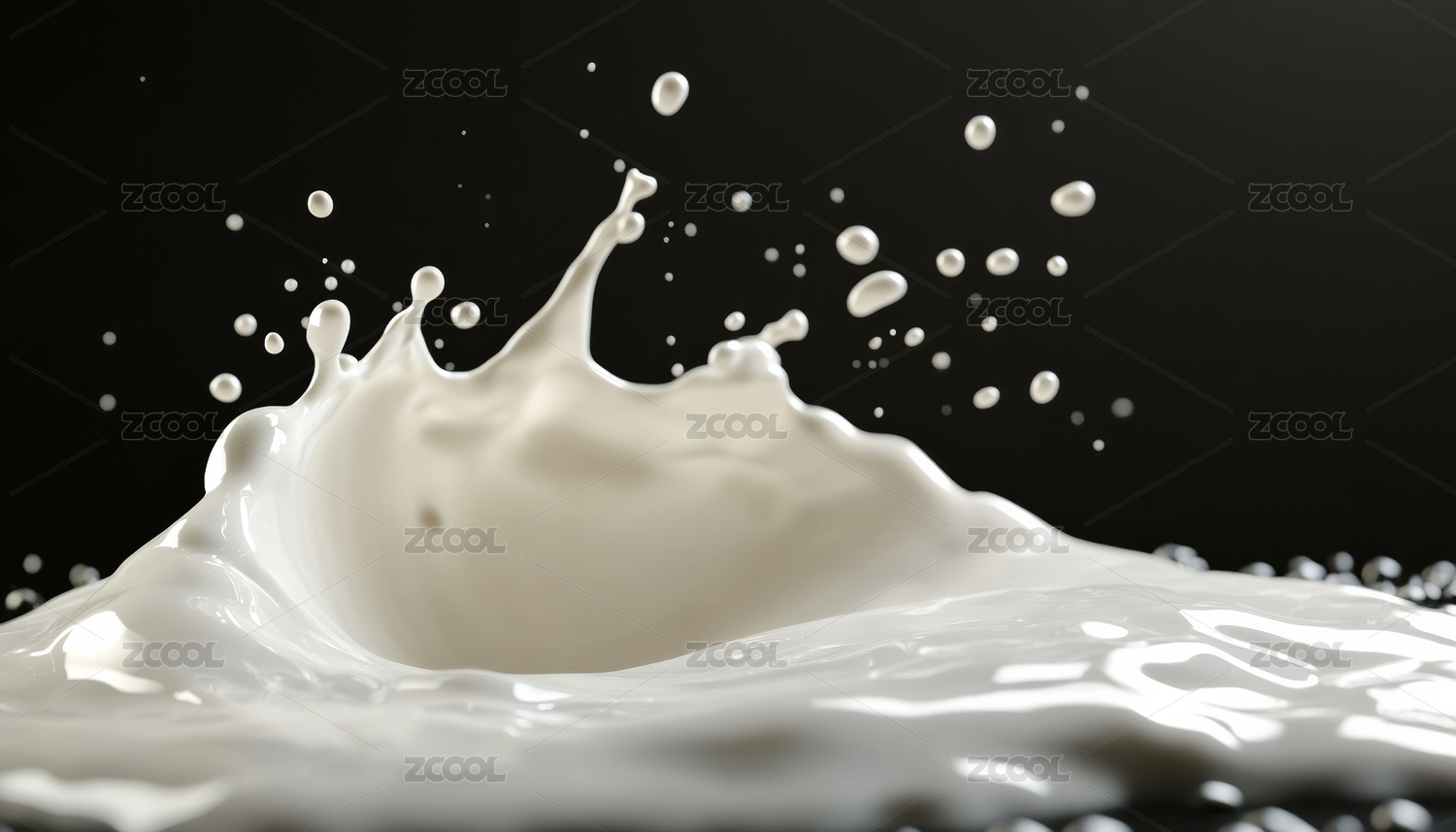 牛奶飞溅和倾倒,健康新鲜早餐牛奶饮料流动