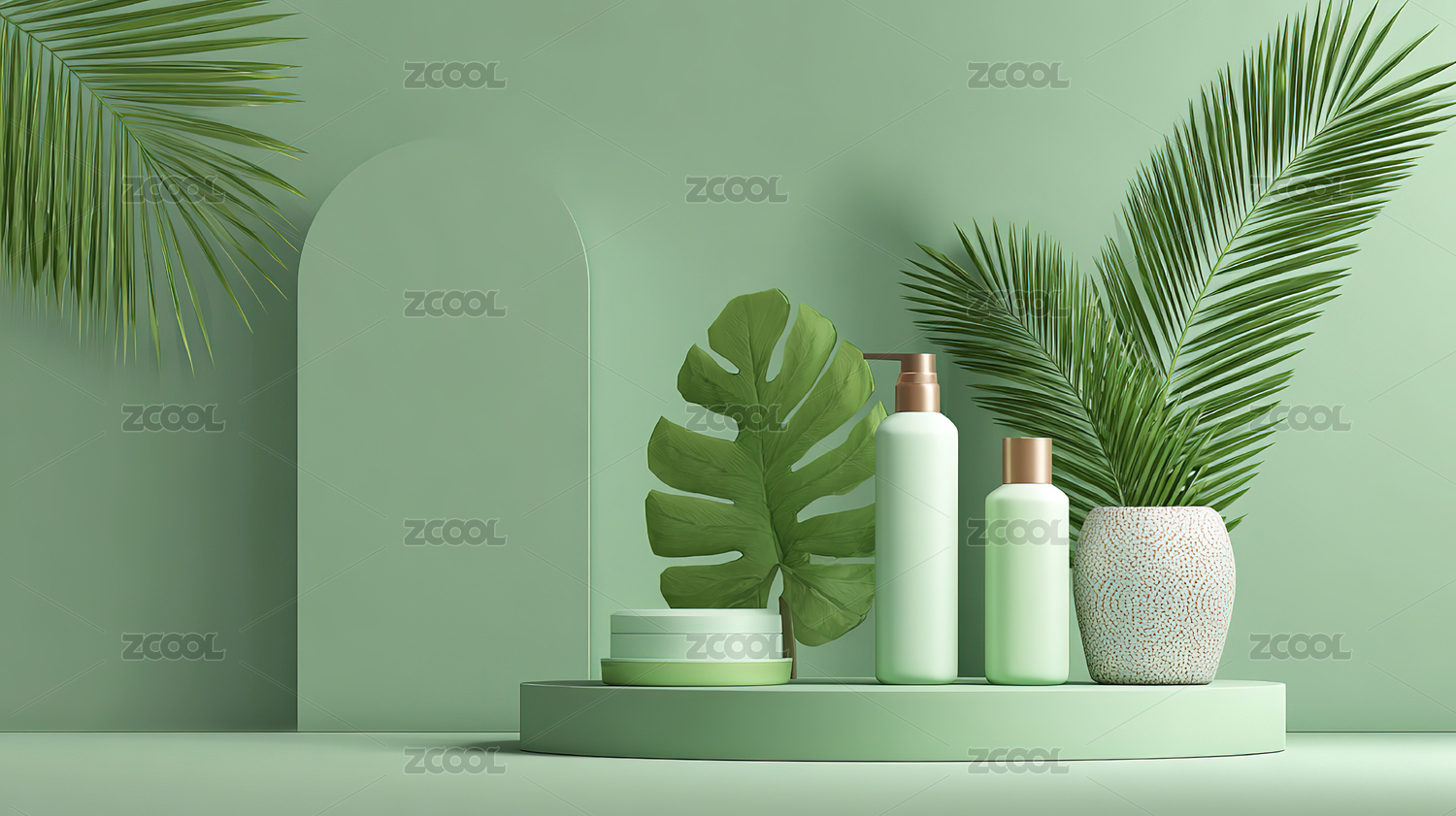 3D电商化妆品植物插画背景