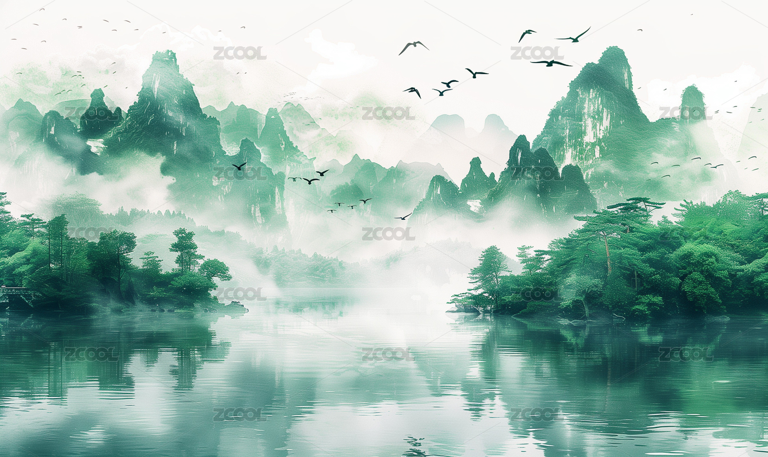 青山绿水中国风写意风景