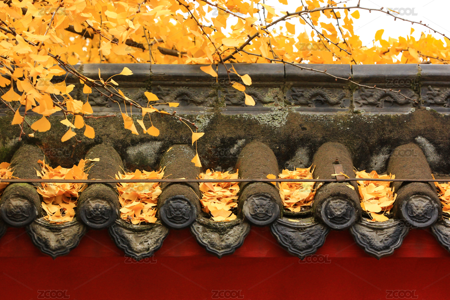 银杏红墙,落叶冬天