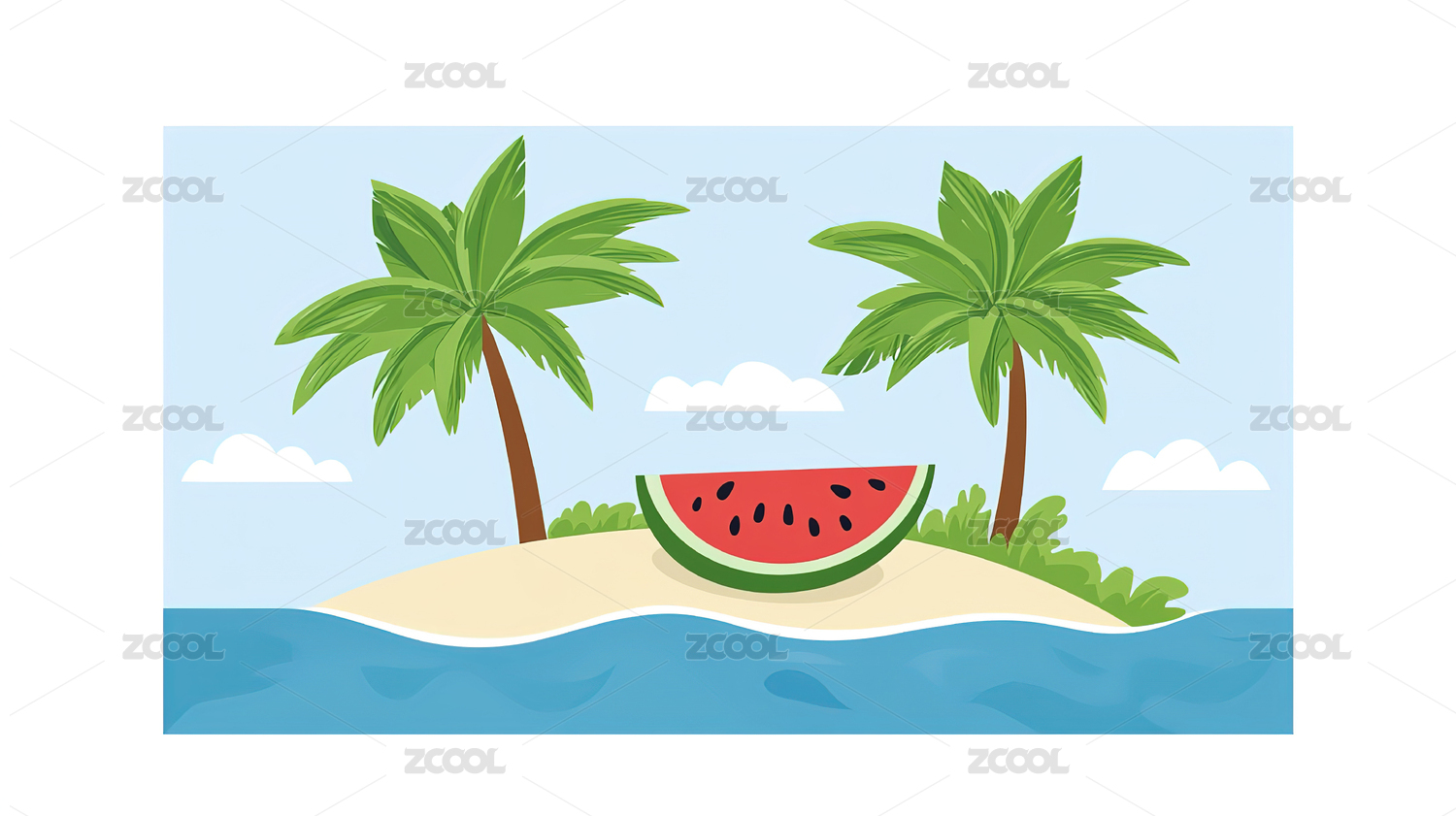 夏天大海冲浪清凉西瓜矢量插画