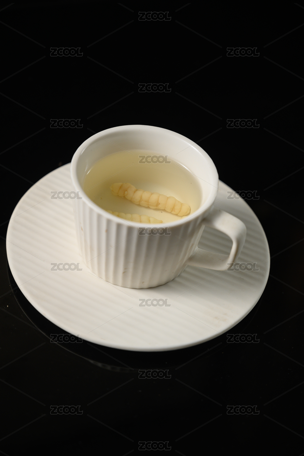 桌面上的杯子里的甘甜可口的金盏菊花茶