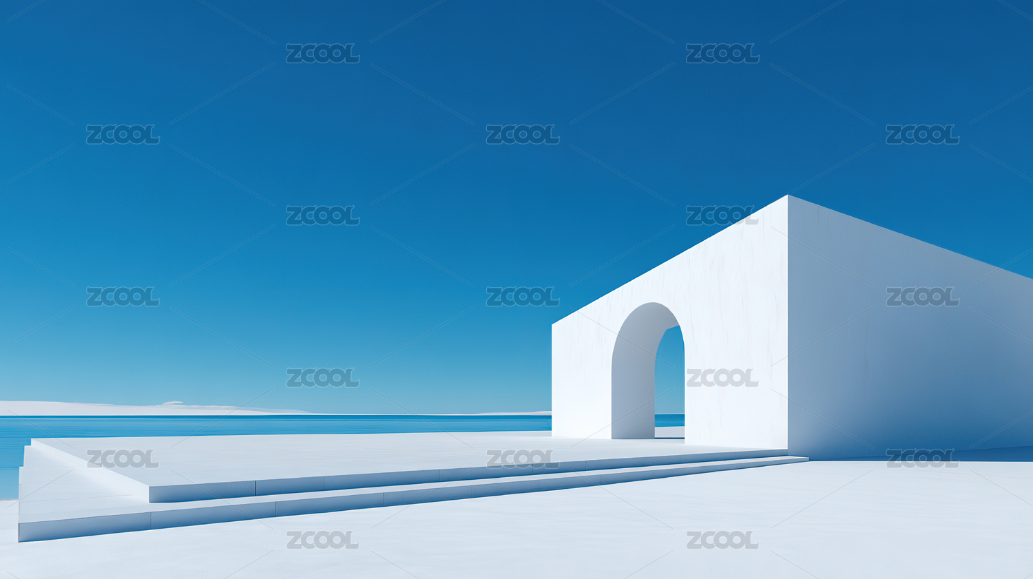 简洁白色拱门结构与蓝天