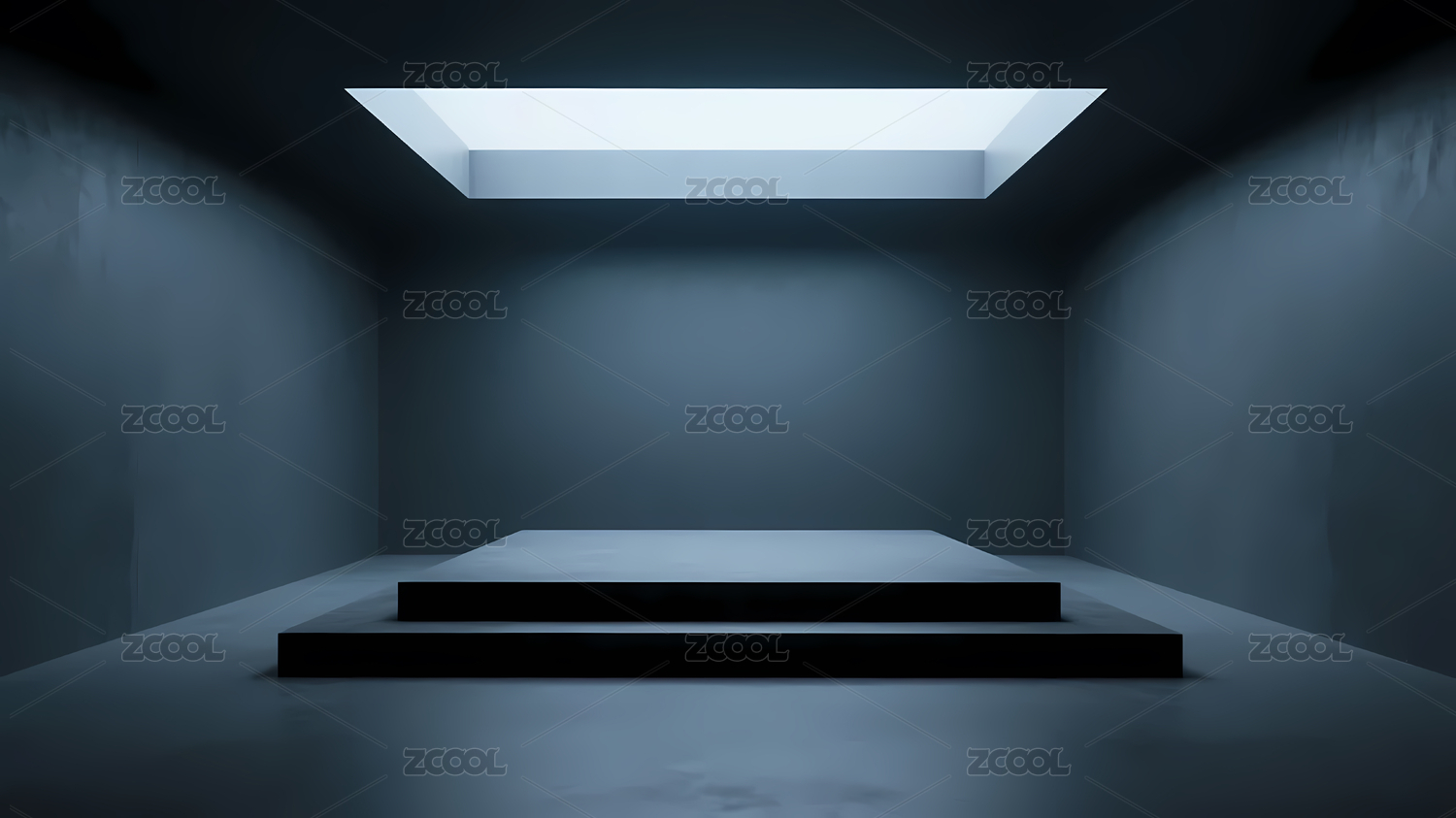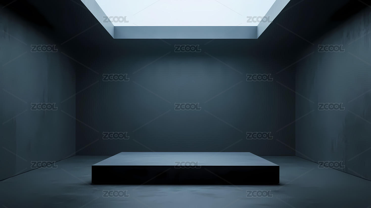 简约蓝色房间内的方形展示台