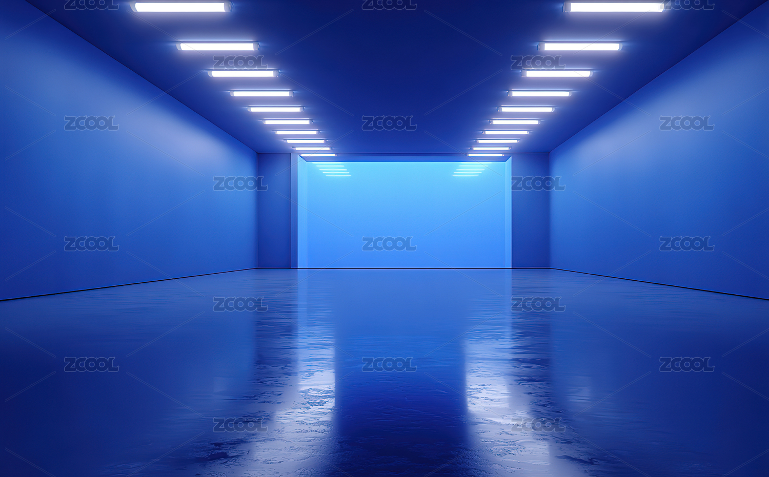 蓝色走廊灯光反射场景