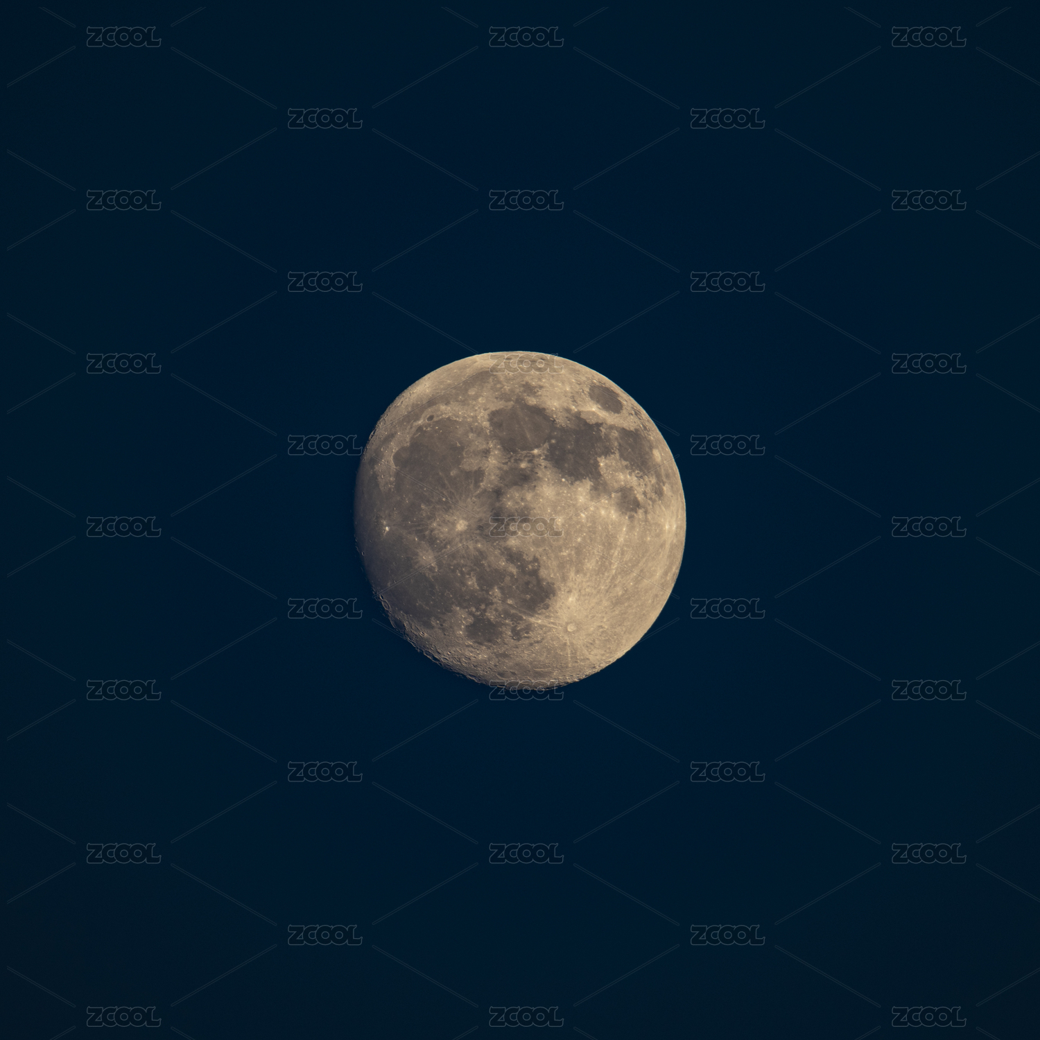 深蓝色的天空中圆月特写