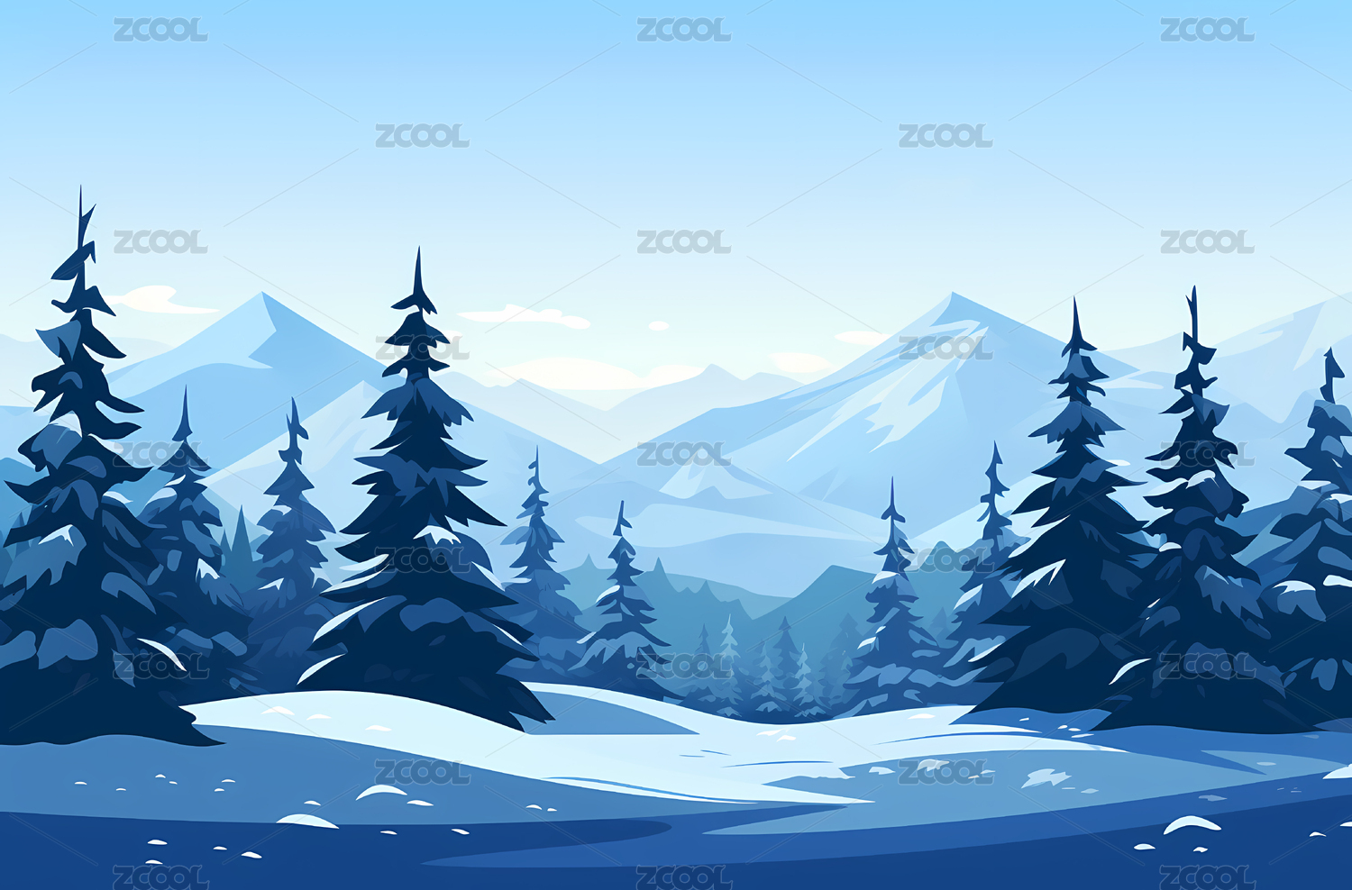 雪山森林插画背景