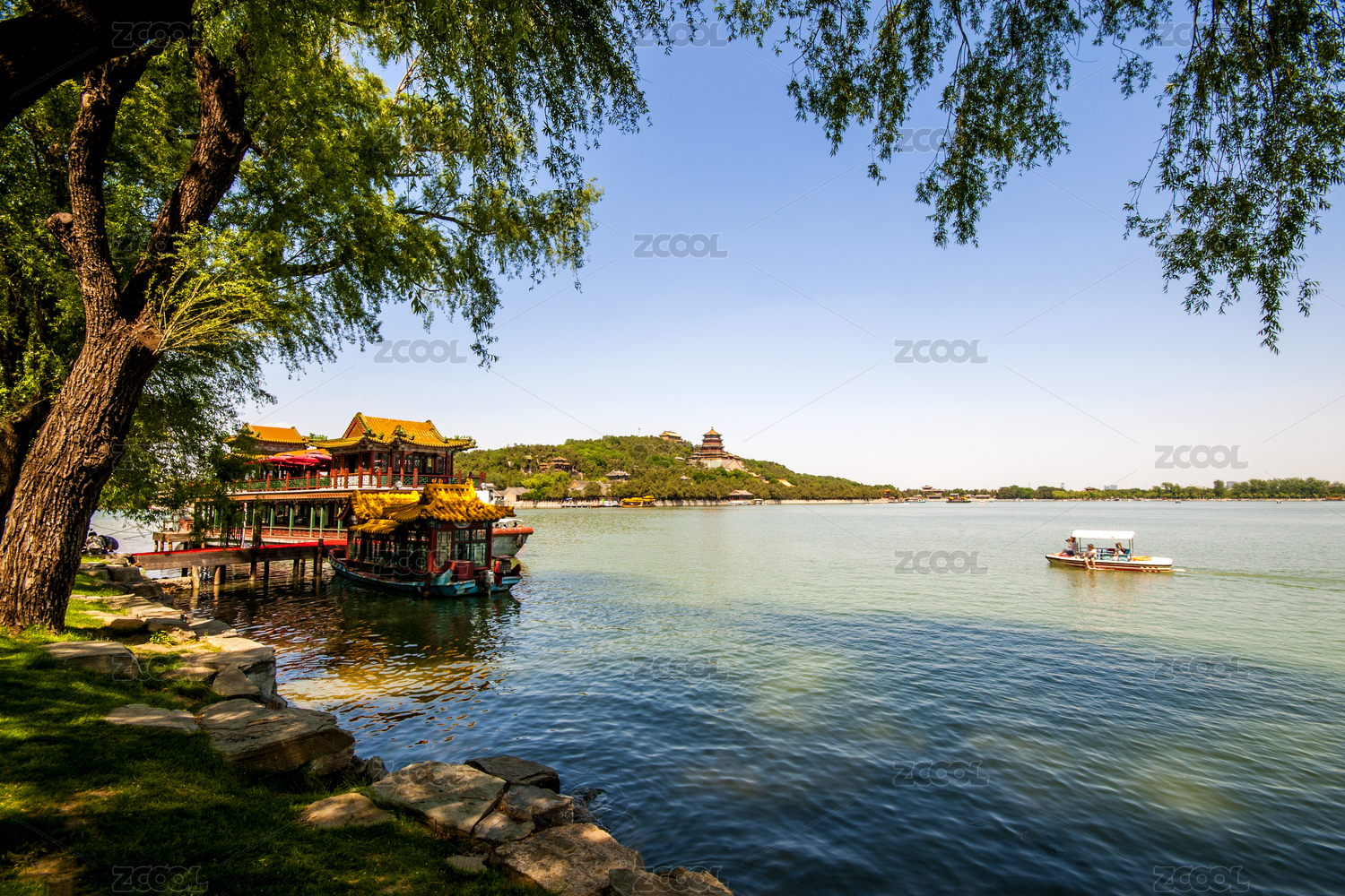 中国北京海淀区颐和园昆明湖对岸的万寿山佛香阁美景