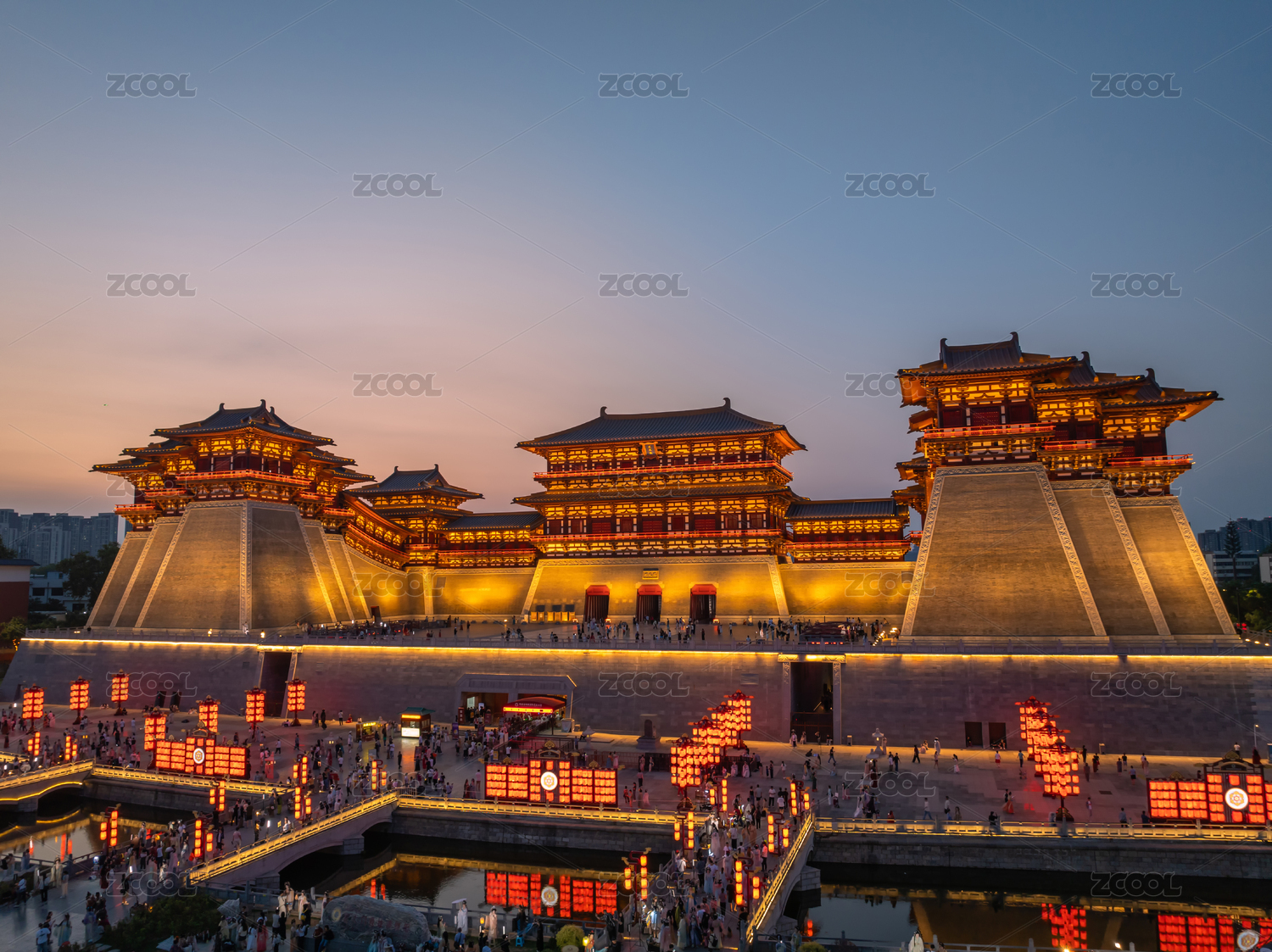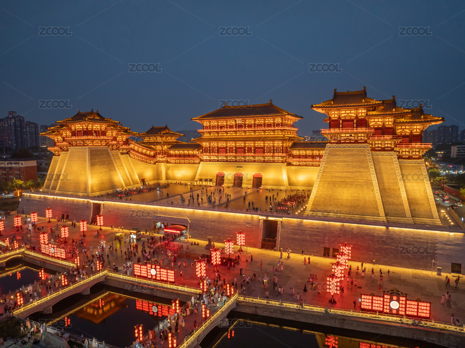 河南省,洛阳市,应天门,天堂,明堂,天堂明堂,隋唐洛阳城,航拍,夜景,城门