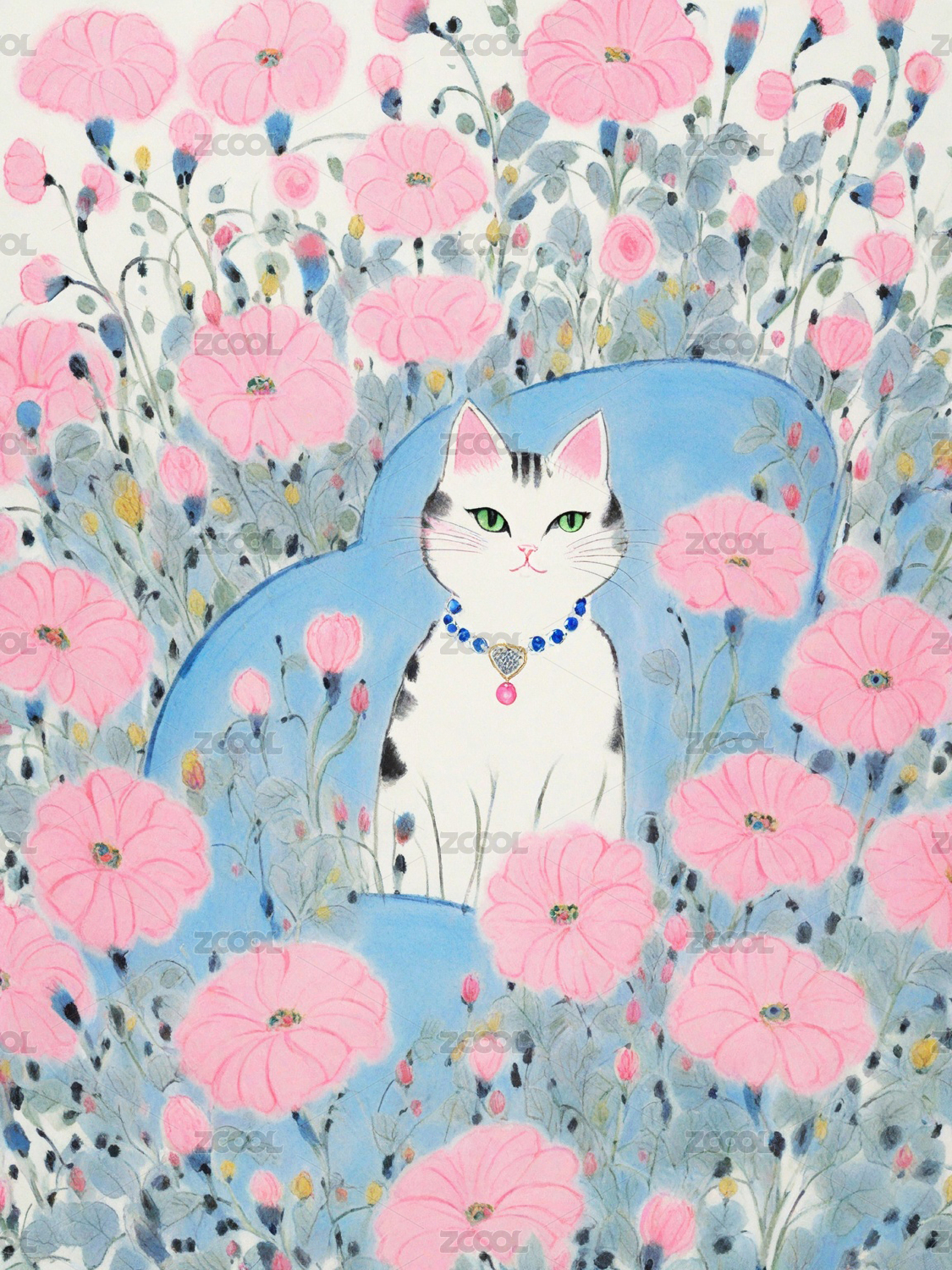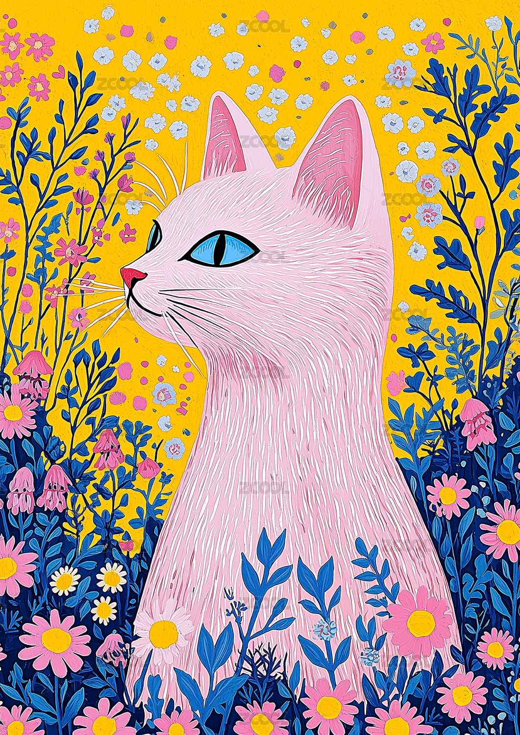 北欧风格居家猫猫感厚涂笔触抽象装饰画
