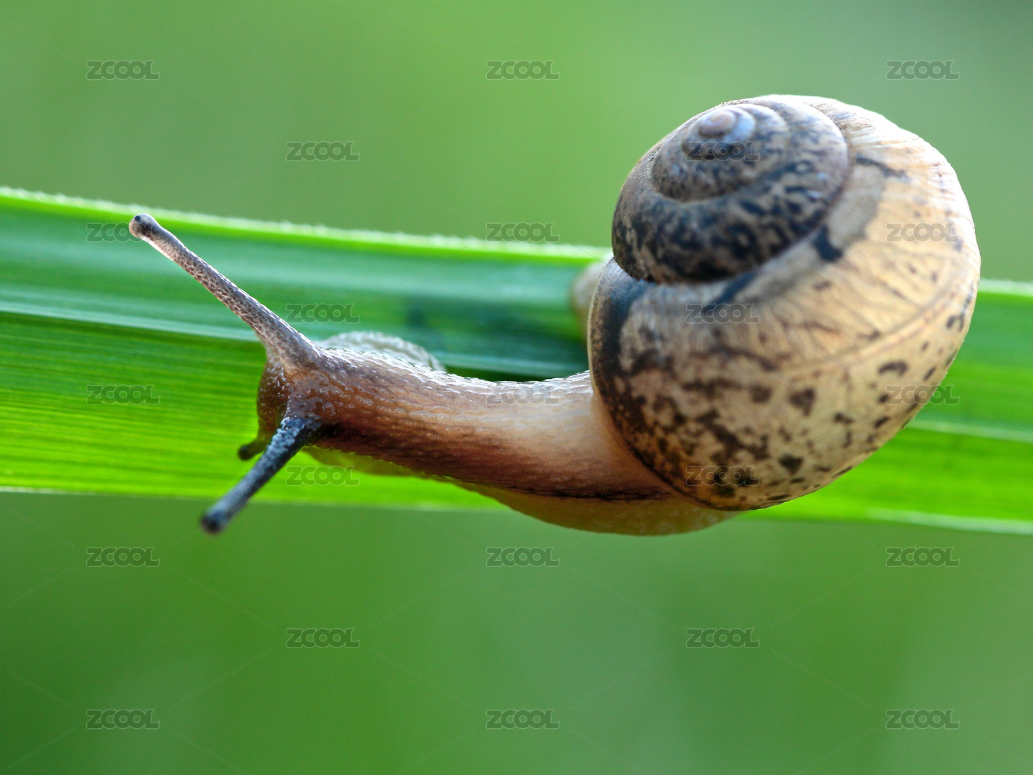 绿叶上的棕色蜗牛